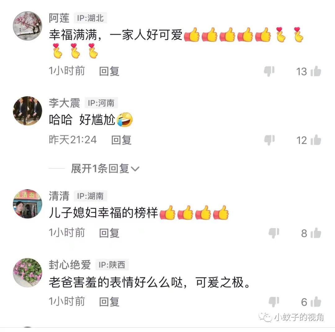 网友说:这一家人好幸福,就是公公有点尴尬。