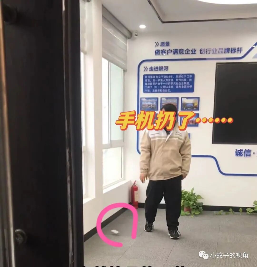吵架的声音惊动了同事,男子也是气不打一处来,一气之下摔了手机,头也不回地回了办公室。