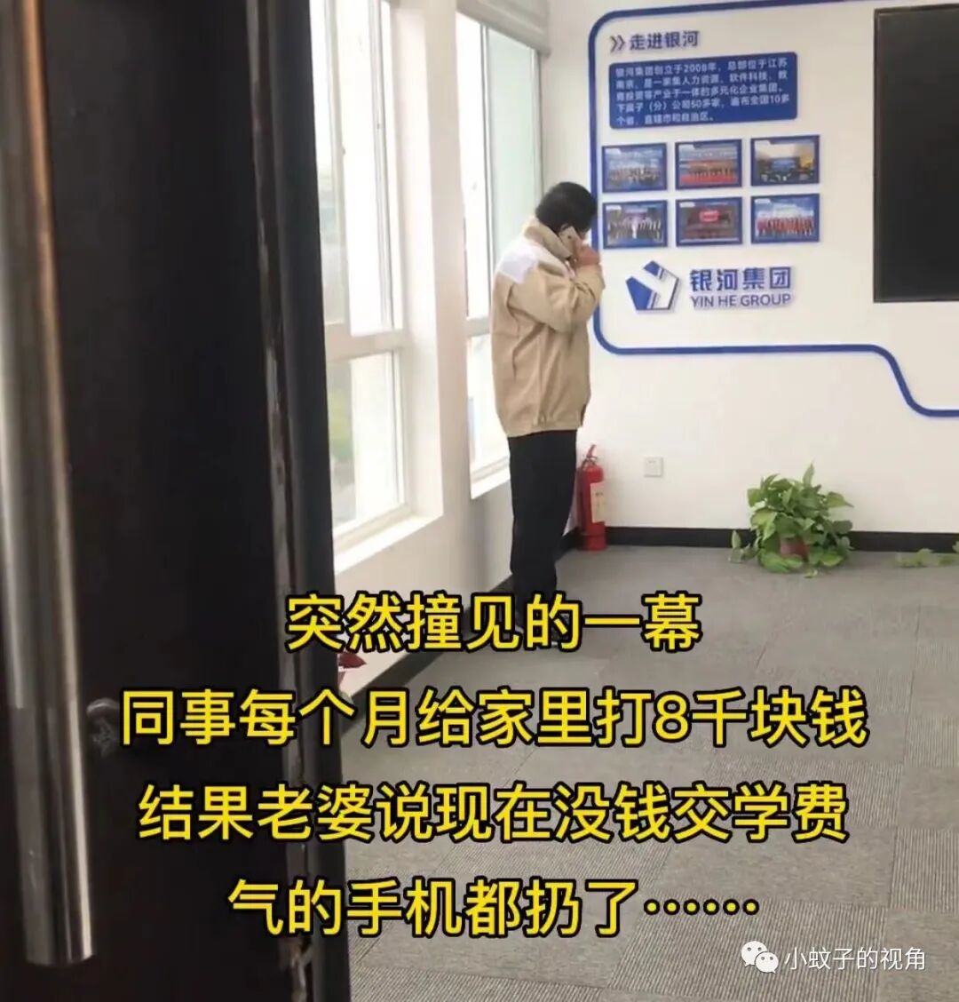 但是没想到,月初刚给妻子打了8000块钱,月底还不到,妻子又打来电话,说孩子要交学费了,让他给孩子交学费。