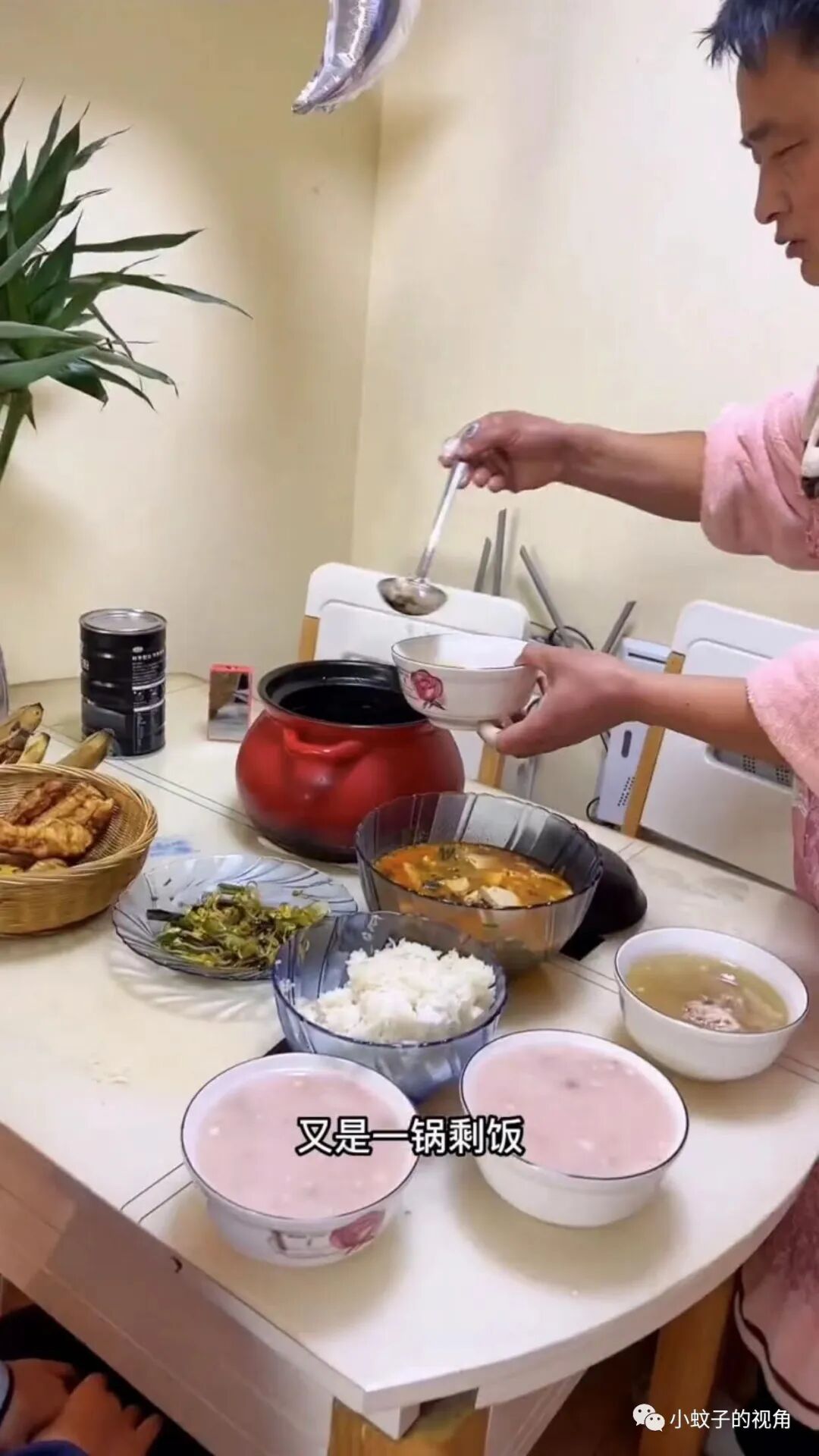 儿子没理他,女儿却在一边抱怨:“别说了,你做的这是啥呀?难吃死了!又是一锅剩饭!天天做饭,剩饭都得有80天了吧?”
