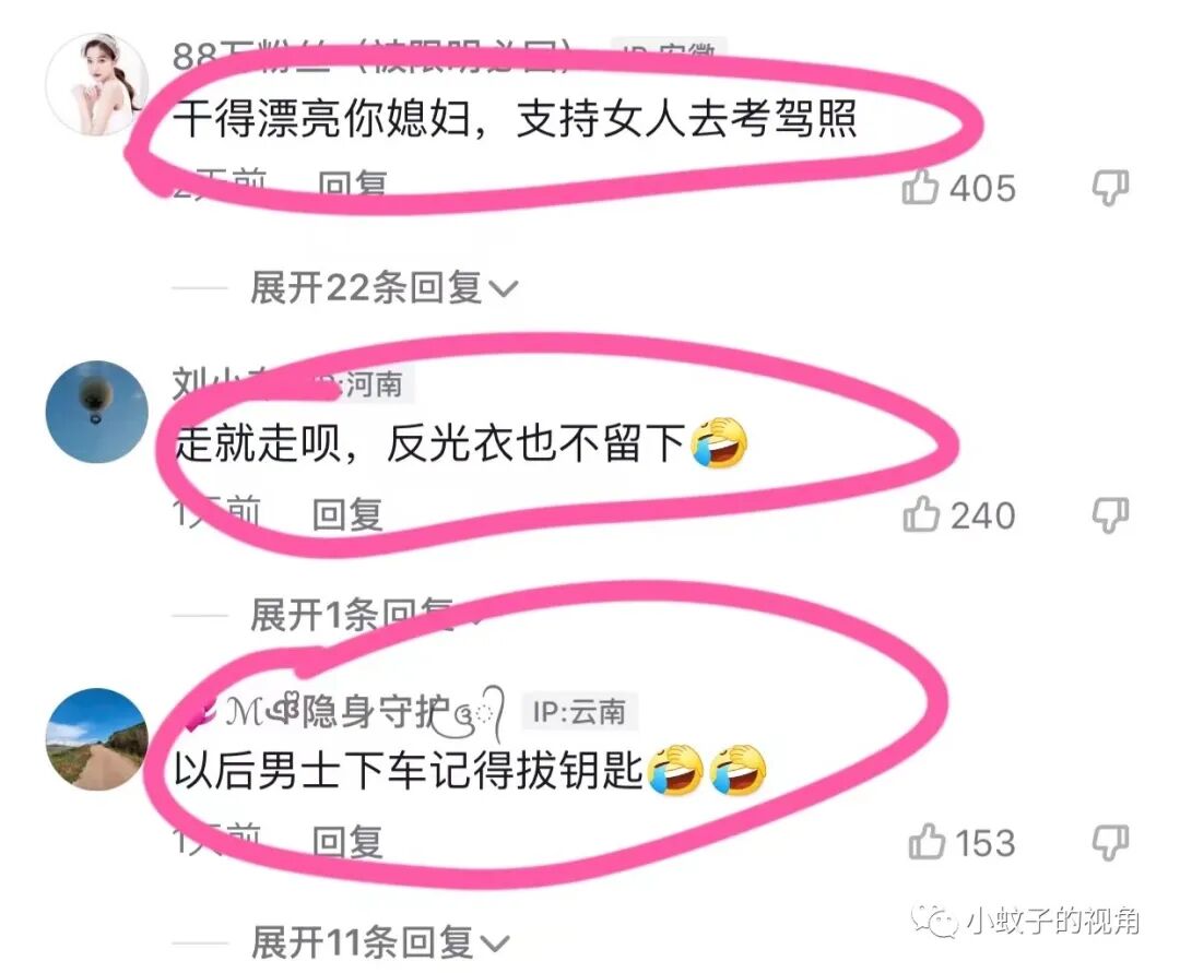 也有女性网友认为她干得解气,说:干得漂亮,支持女人去学驾照。