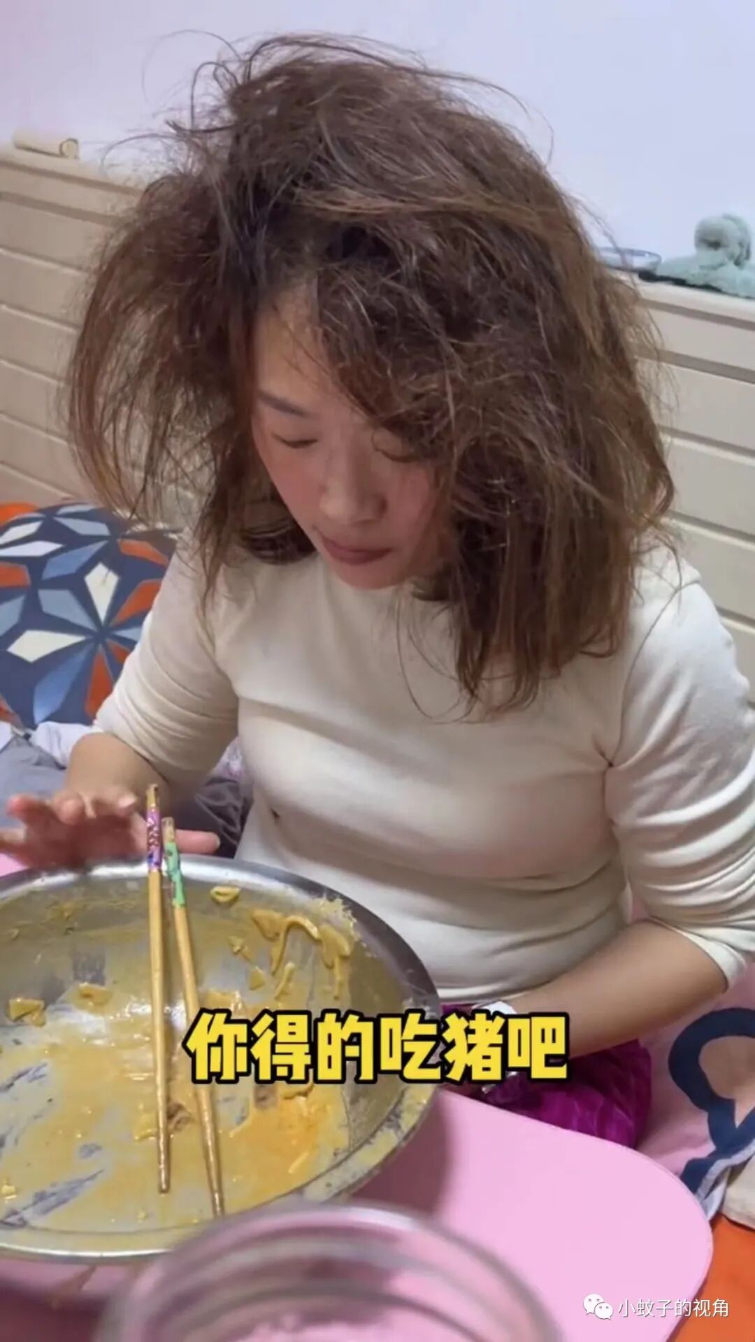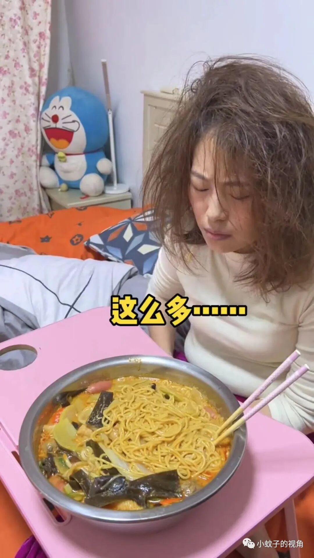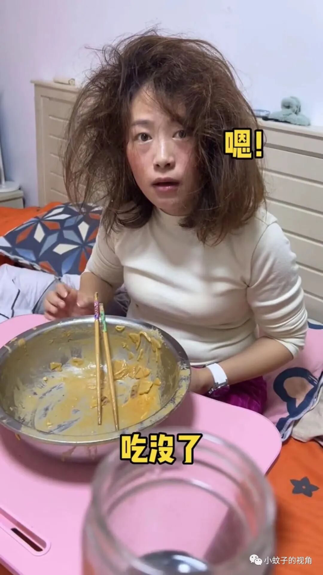 妻子顶着一头今年最流行的发型,一副有气无力的模样,看着一大盆麻辣烫:“这么多?”