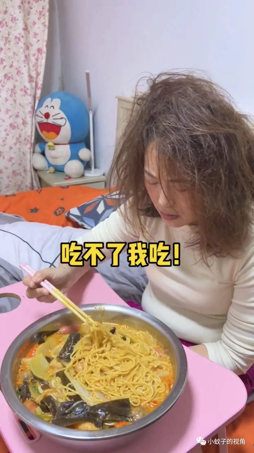 也有网友说:天天躺在床上别吃这么多,长肉不说,万一肠胃消化不了,还要增加身体负担。