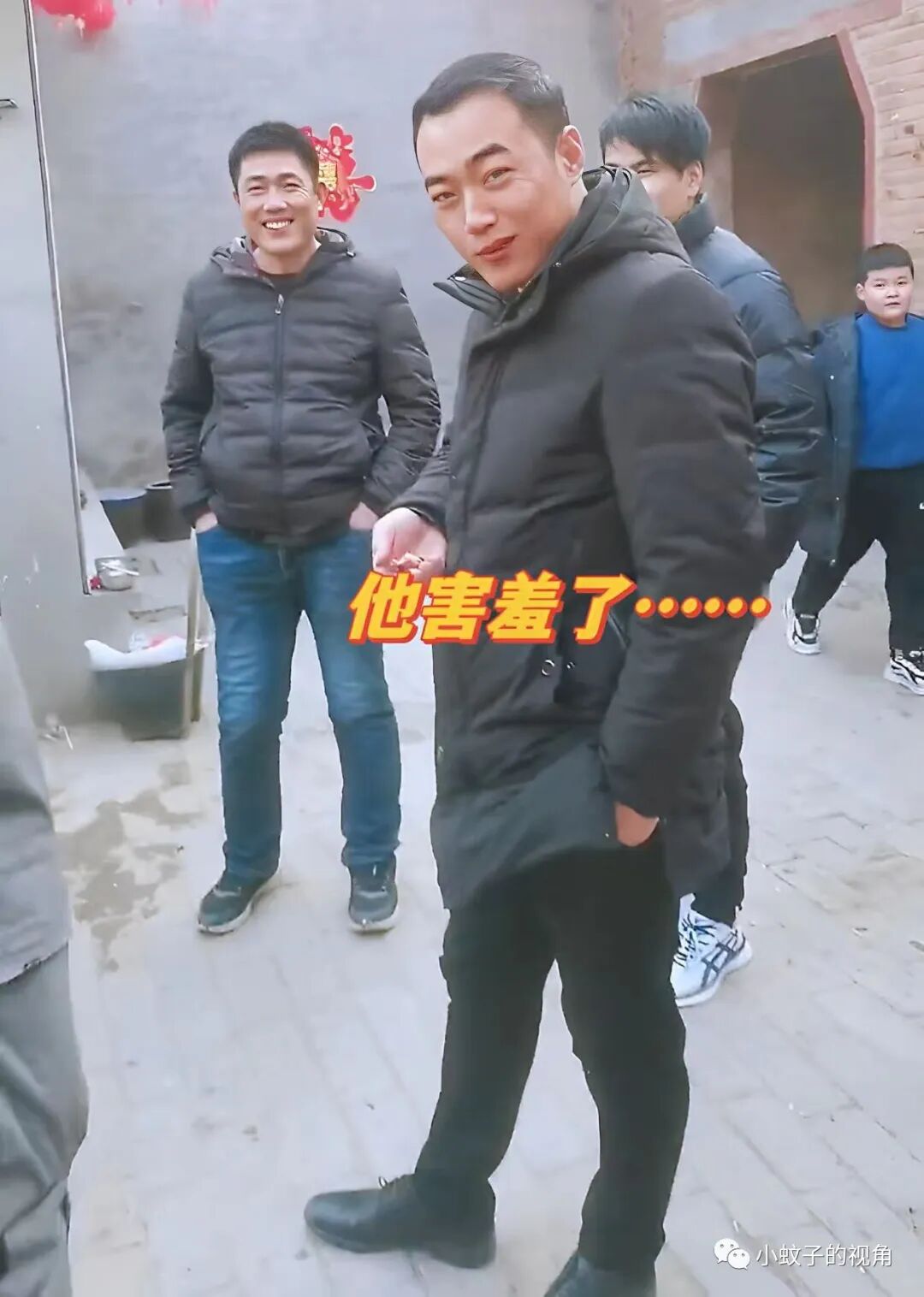 邻居的笑意让男子更加不好意思了,脸都开始发红了。