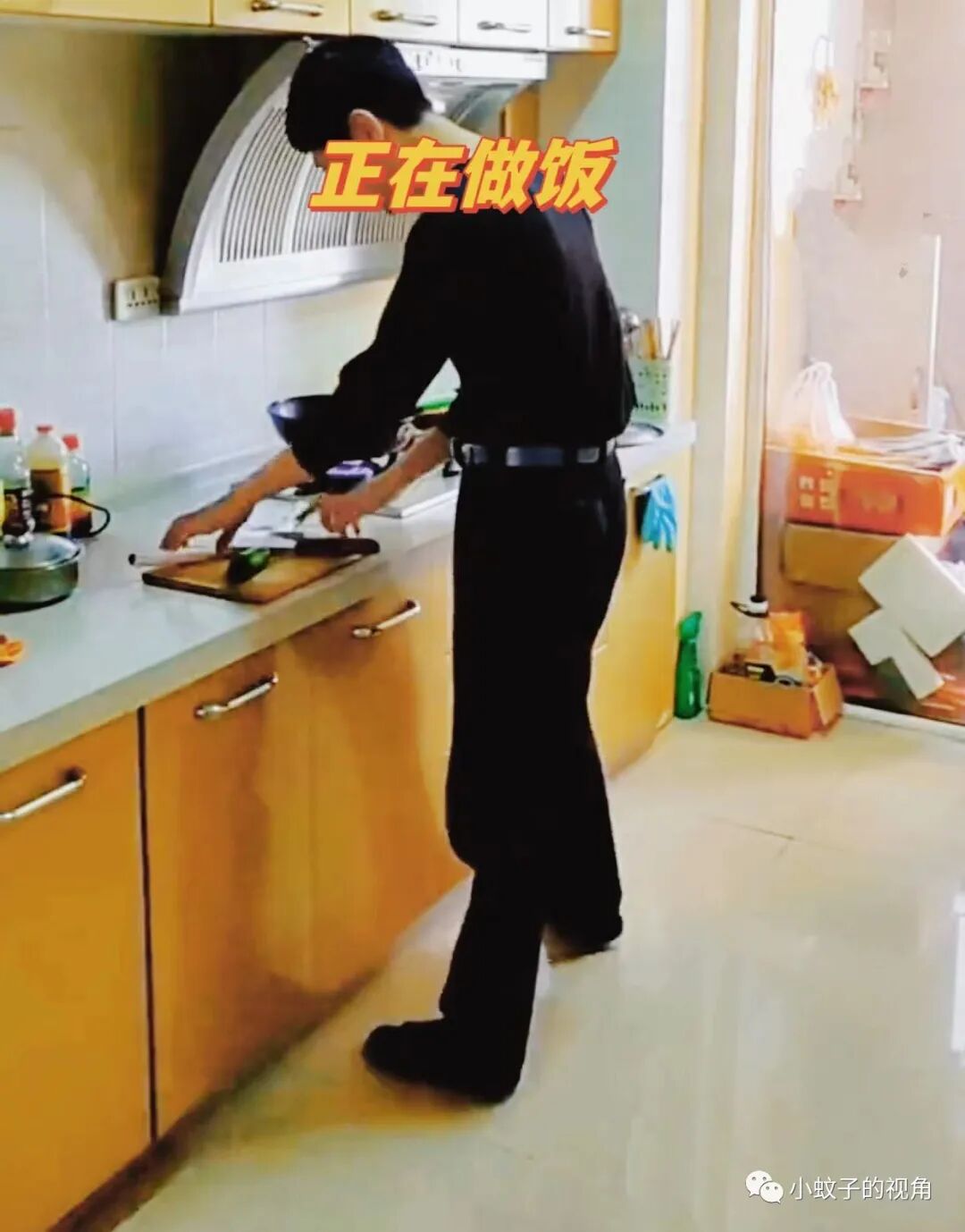 从女子记录的影像来看,男子平时做饭也是一把能手,进了厨房动作麻利,丝毫不拖泥带水,做饭也是信手拈来。