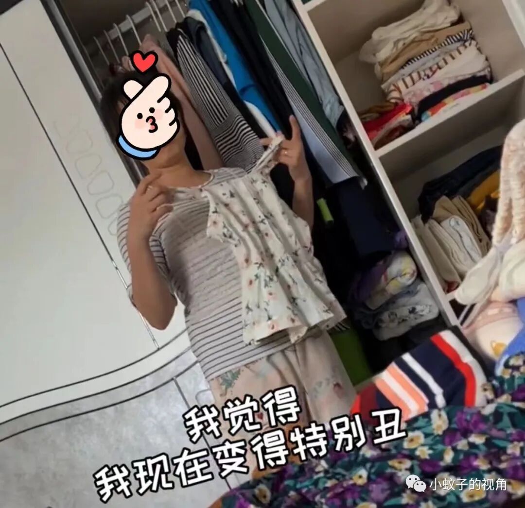 那天,孩子很乖,躺在床上不哭不闹,妻子有点时间就赶紧去整理衣橱,一边收拾一边说:“这些衣服我都穿不了了,我觉得我现在变得特别丑了。”