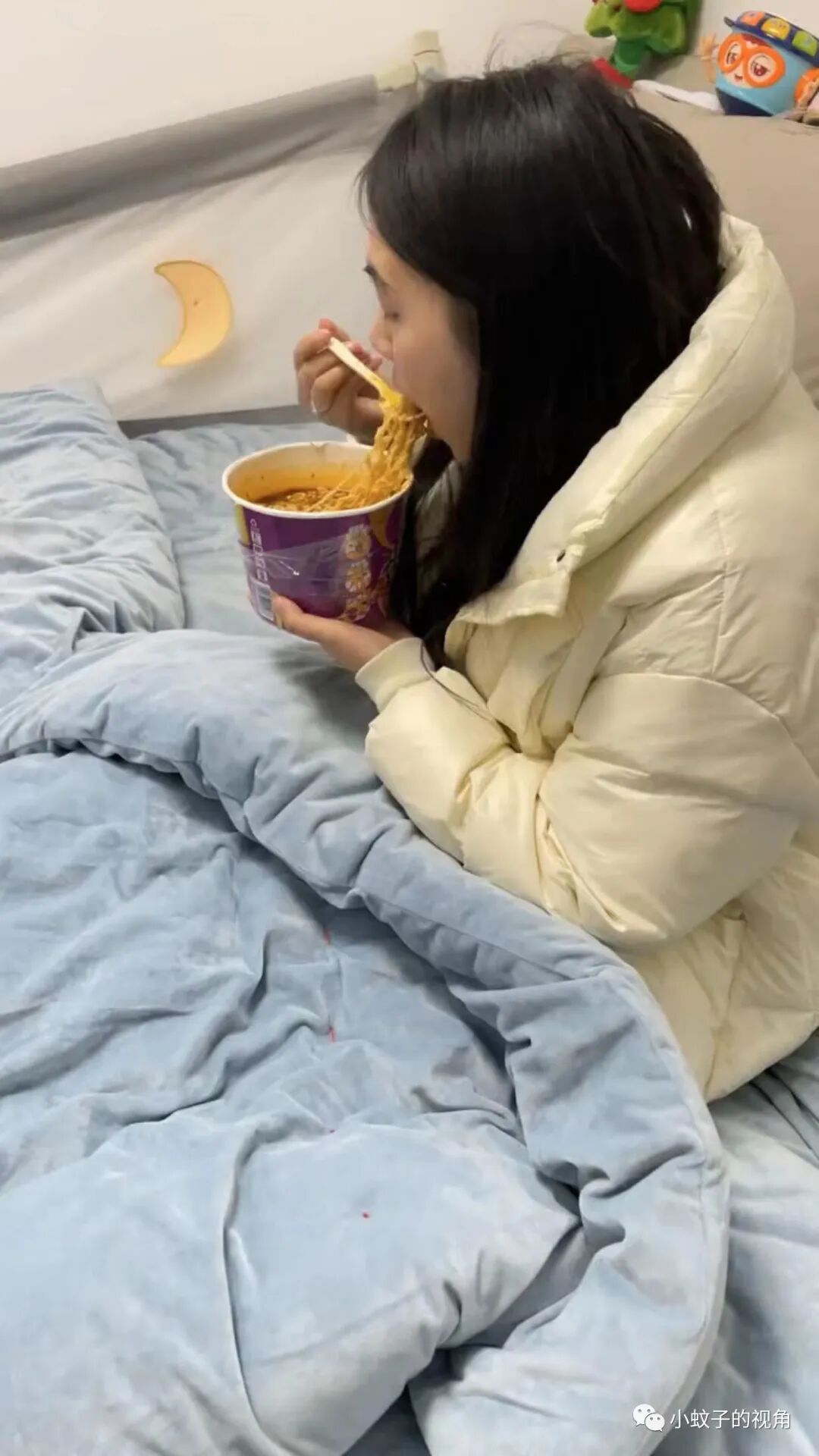 女子买了一桶泡面,躲在房间偷偷吃,没想到却被婆婆闻到了味道,又对她一顿说教。