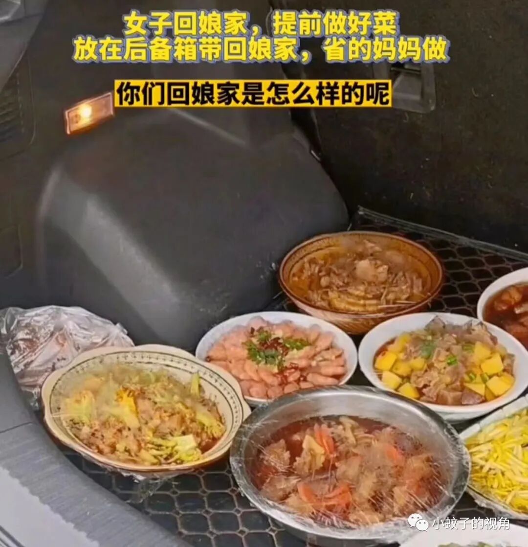 就像这位女子一样,人家回娘家都是大包小包的礼物,她回娘家拉了一后备箱做熟的饭菜,得知愿意令人哭笑不得。
