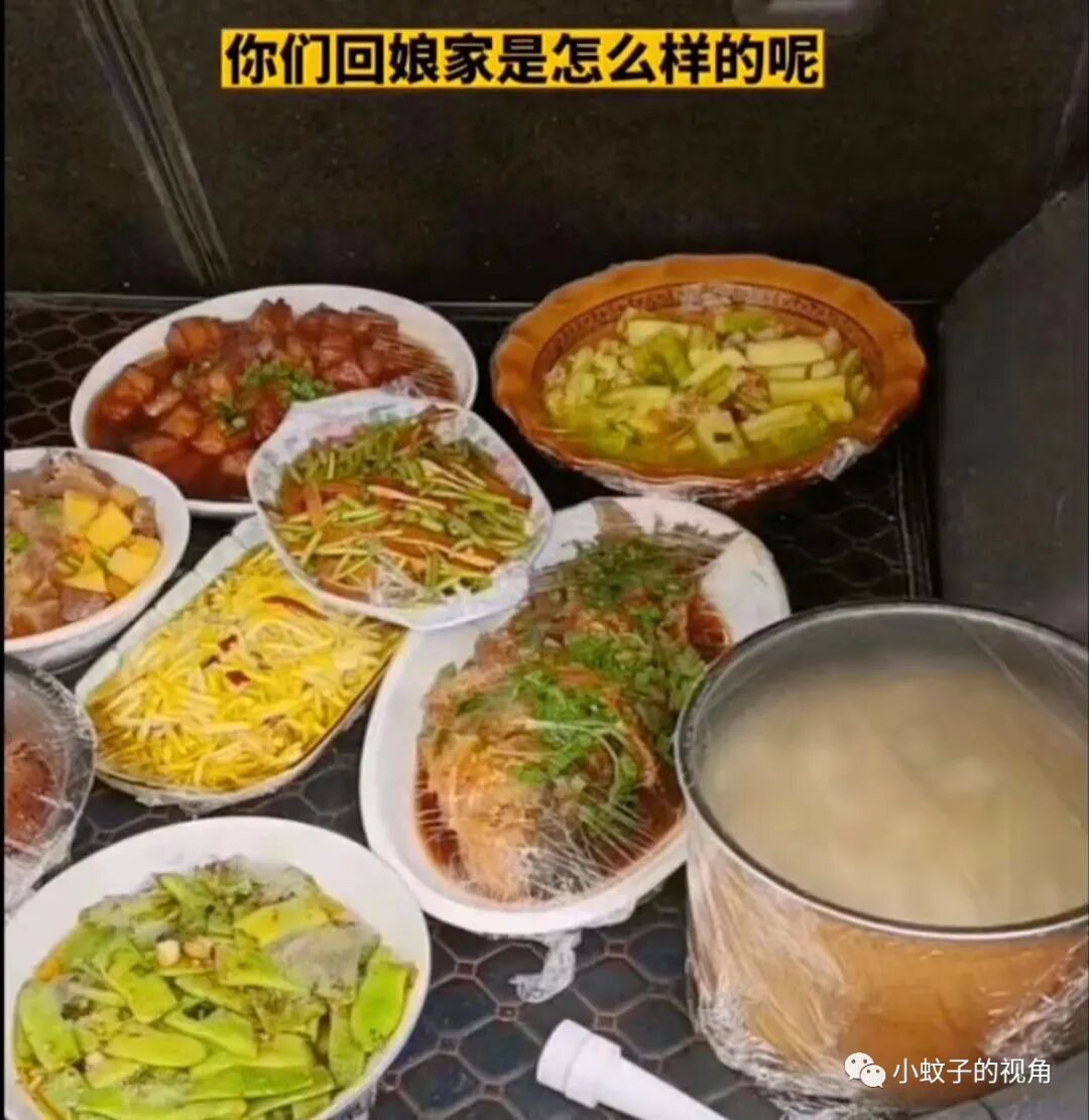 也有网友说:都说回娘家的路是用金钱铺成的,看到她这样做,我却想说,如果回娘家都自带饭菜的话,回娘家的意义在哪里?出去吃不行吗?
