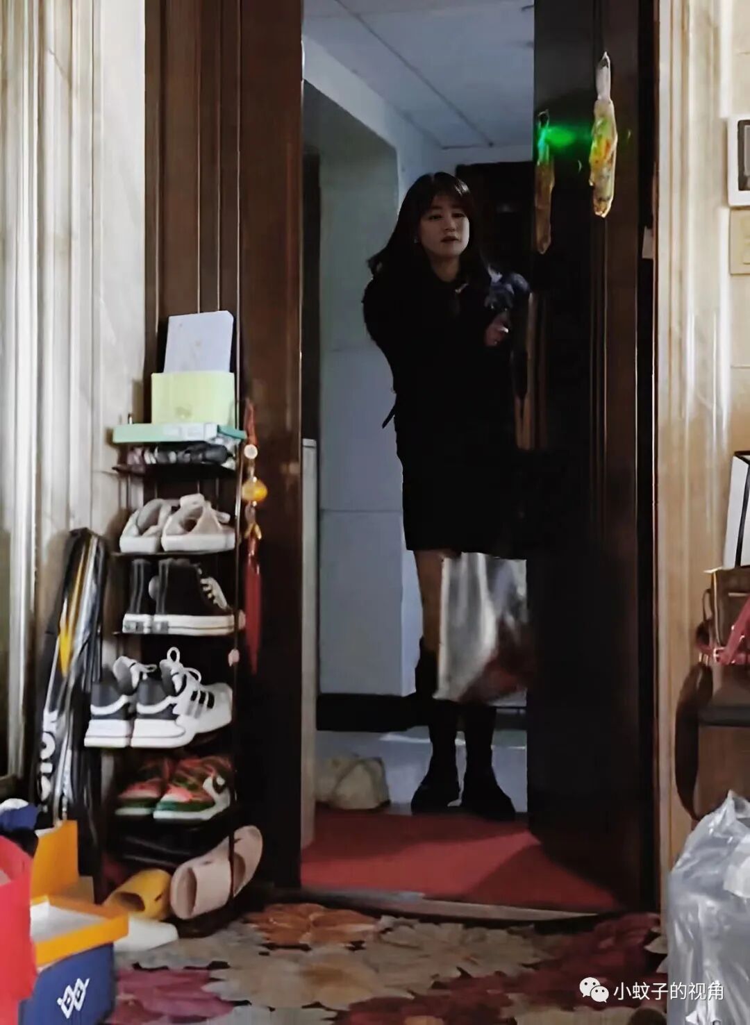 妈妈从手提袋里拎出一个小包,冲着女儿挥挥手,回头的瞬间我们还能看到:她还画着精致的妆容,虽然妆容并不浓,却非常适合她的气质。
