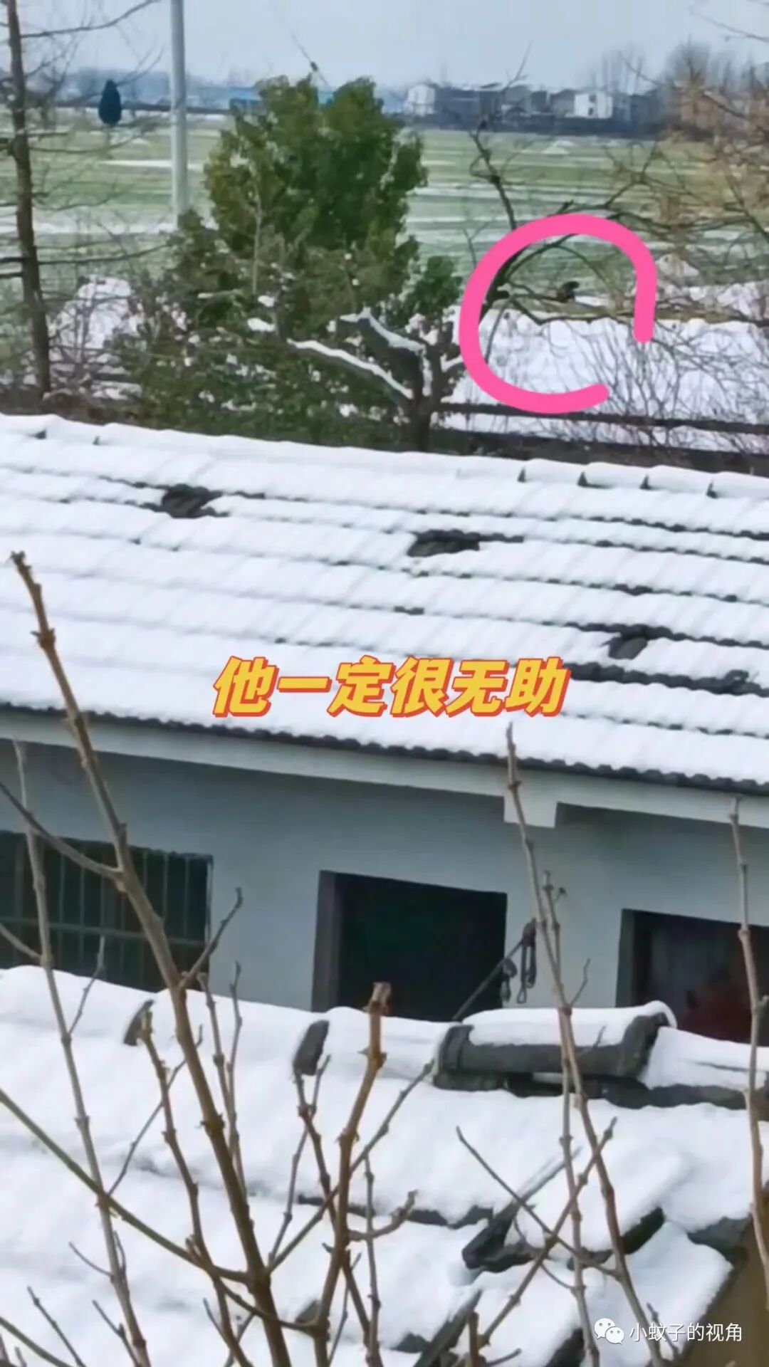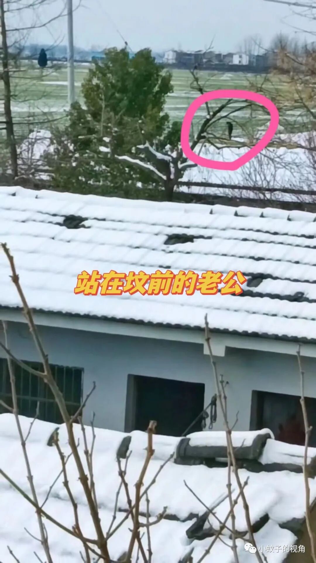 于是,她爬上自家厨房的房顶,从那里眺望婆婆的坟地所在。她看到老公一个站在冰天雪地里跟婆婆说话,一会儿站在坟前,一会儿又蹲在地上,他应该是哭了!