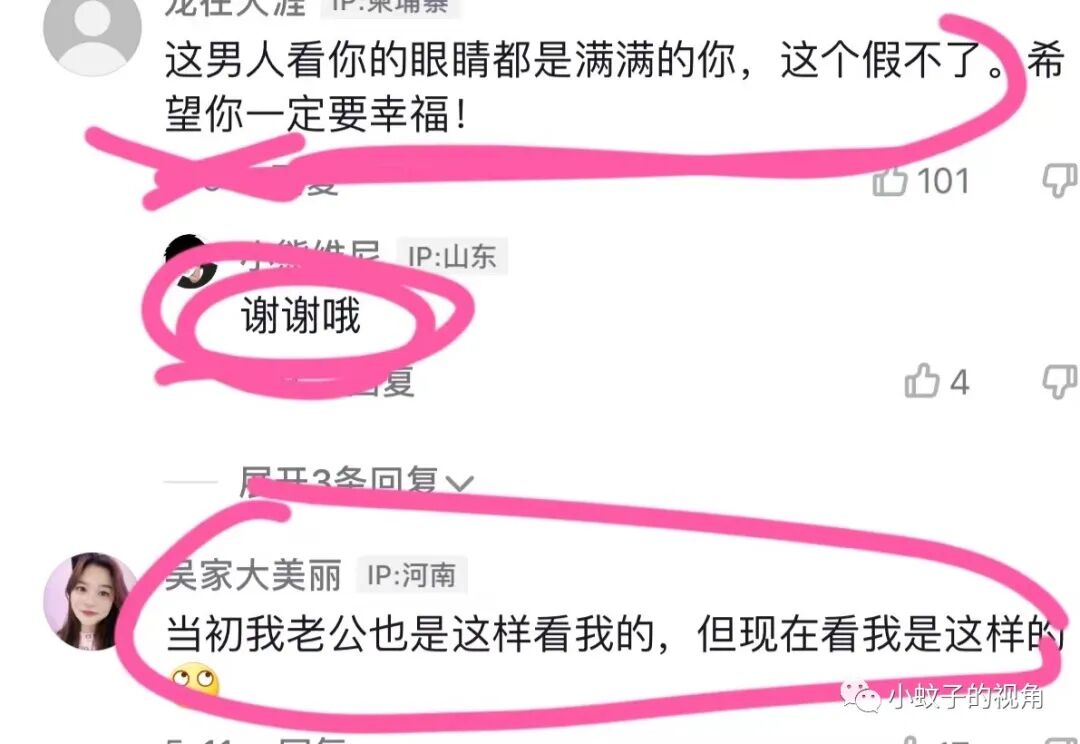 网友也说:这男人看你的眼睛里都是满满的你,这个假不了。希望你一定要幸福。