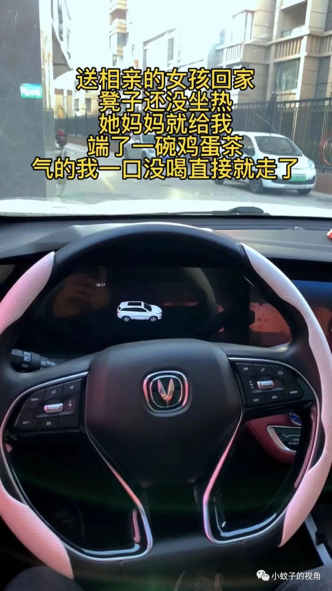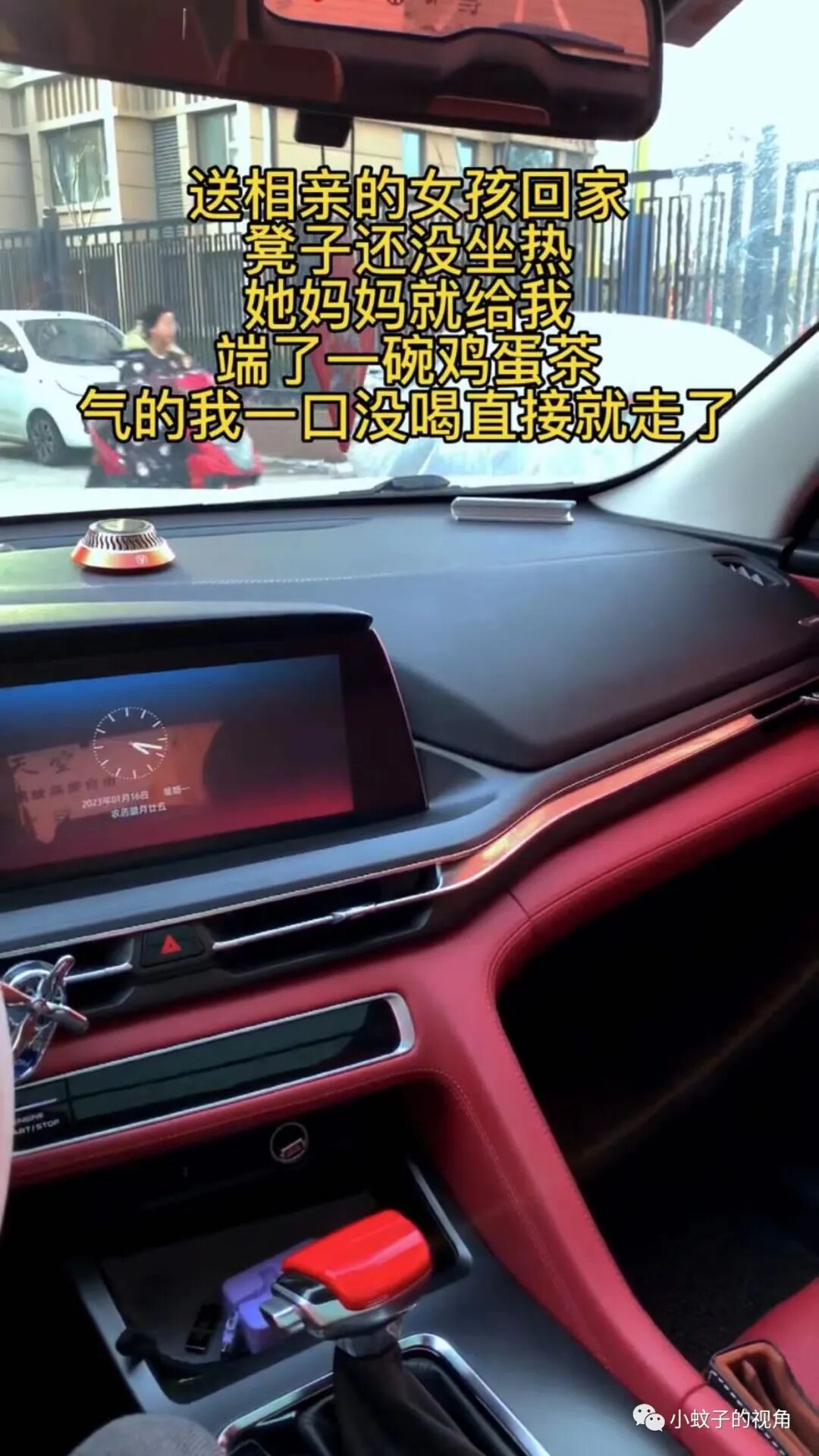 就像这位男子一样,他开车送相亲女孩回家,板凳还没坐热,女孩的妈妈就给他端了一碗鸡蛋茶,男子生气地起身就走。