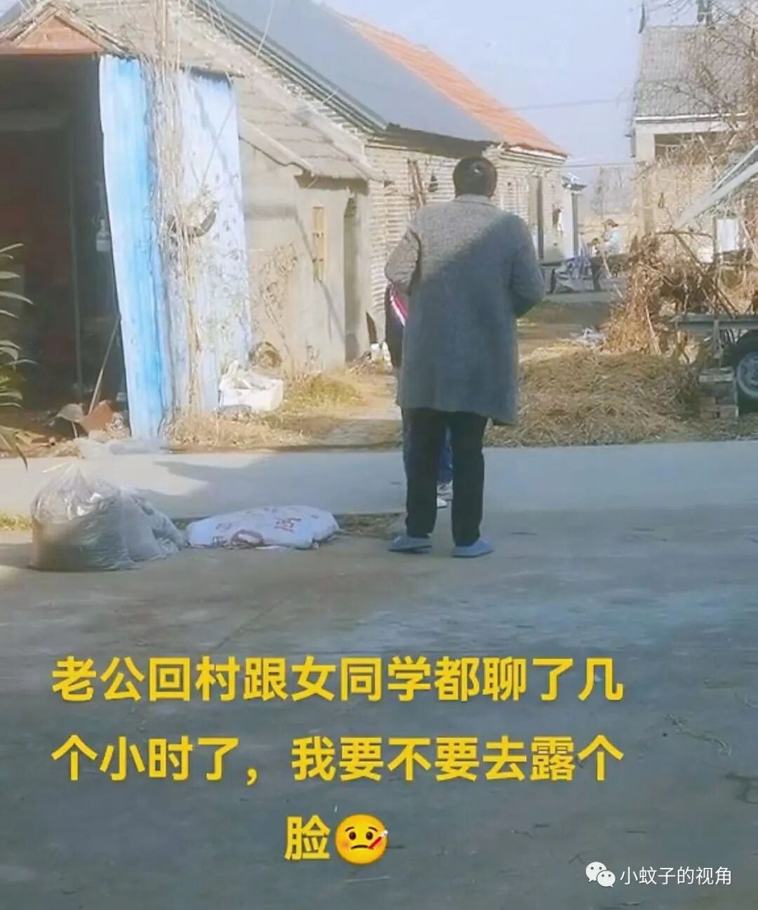 就像这名男子一样,妻子跟他一起回老家过年,他却站在路边跟女同学聊天,一聊就是几个小时!妻子叹气:我到底该不该露个面?