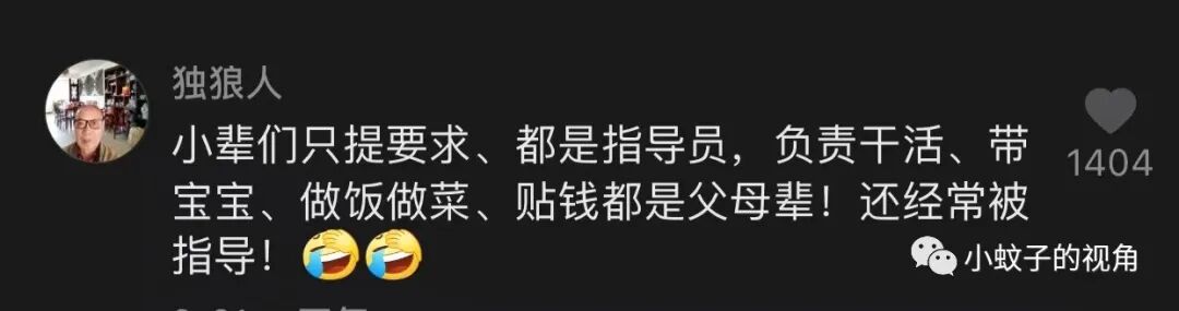 网友说:小辈们只提要求,都是指导员,负责干活、带宝宝、做饭做菜、贴钱的都是父母辈,还经常被指导!