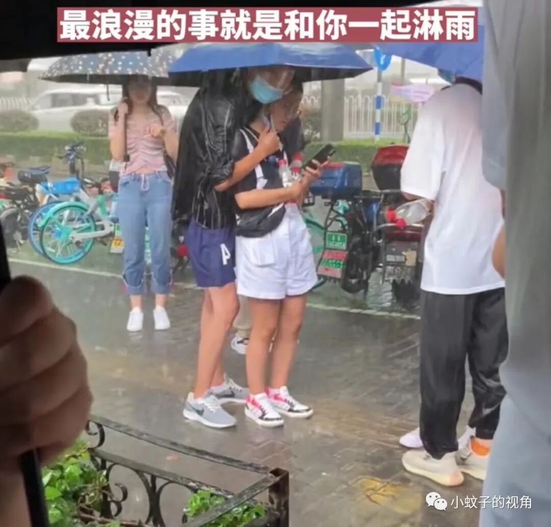 就像这对情侣一样,如果是夫妻,早就让老公回家再取一把雨伞了,哪里还能等到下雨还无动于衷。