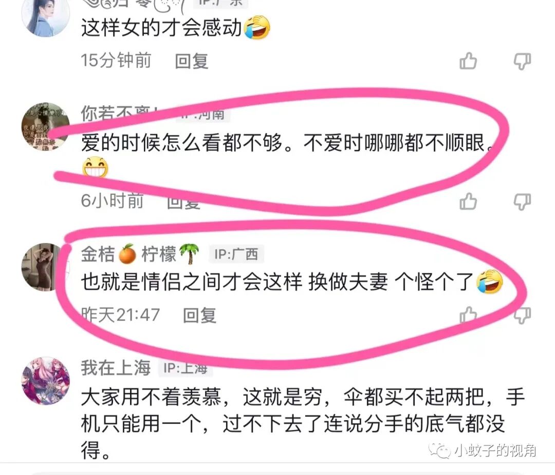 网友看了说:爱的时候怎么看都不够,不爱的时候怎么看都不顺眼。