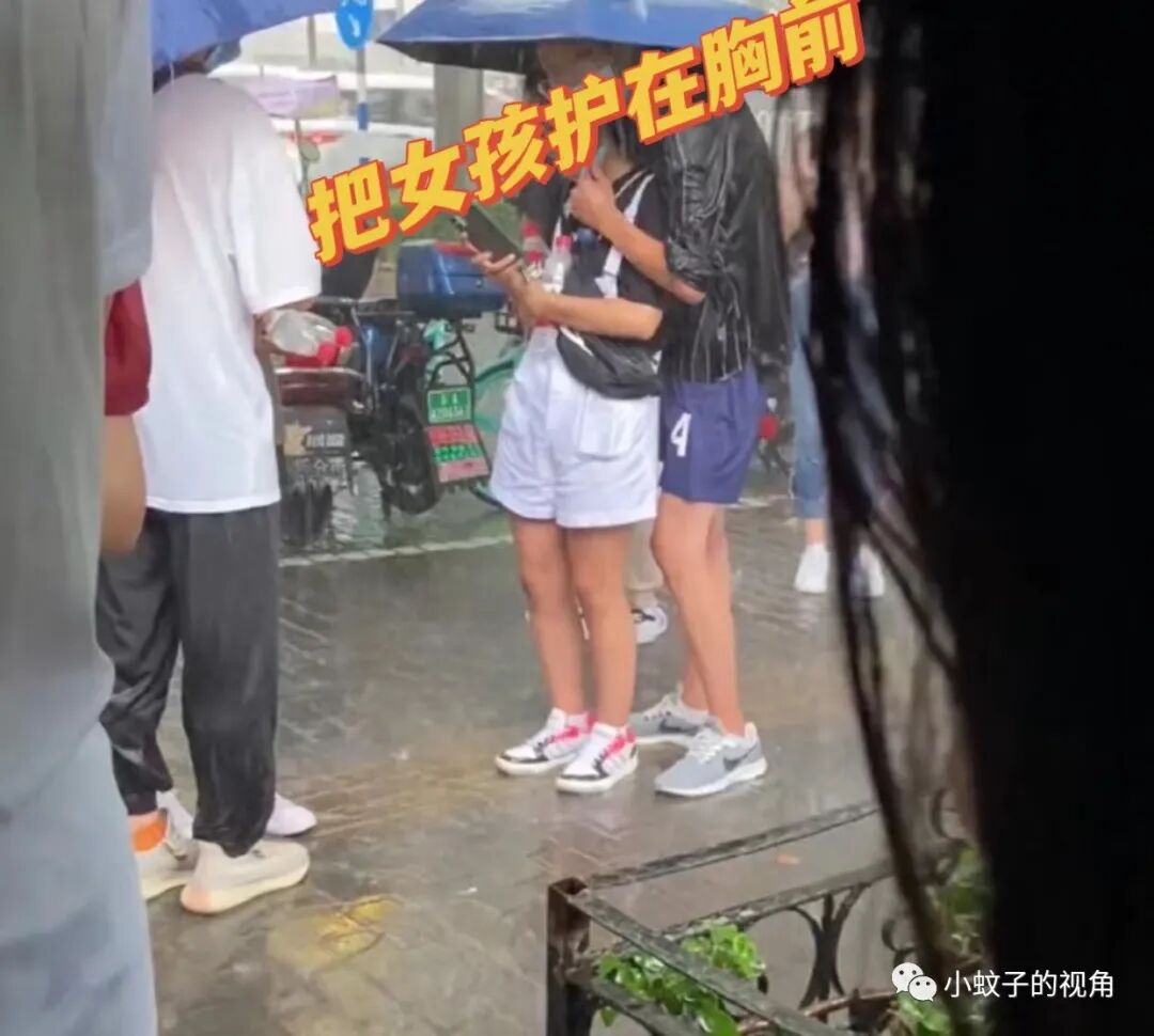 就像这对情侣一样,大雨中排队检测核酸,男生全身湿透也要把女孩护在怀里,引众人纷纷侧目。