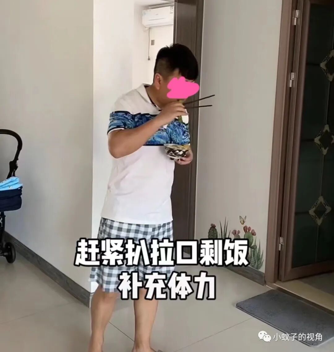 他抬头一看时间,已经过了中午,赶紧扒拉了两口剩饭,刷刷孩子的奶瓶,还没等他坐下休息一会儿,孩子又醒了!