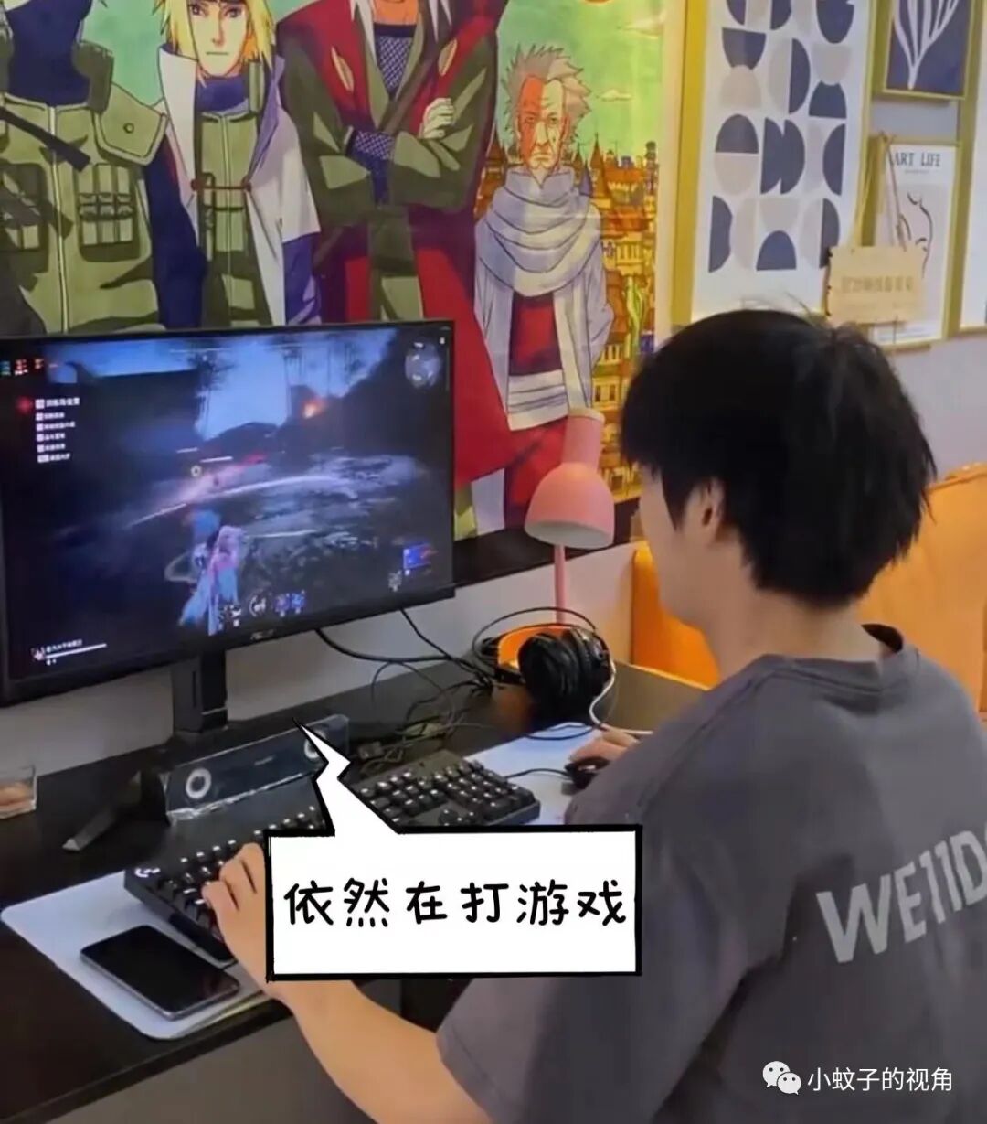 结果,玩到忘记了时间,一直到女孩回家,他还坐在电脑跟前打游戏。