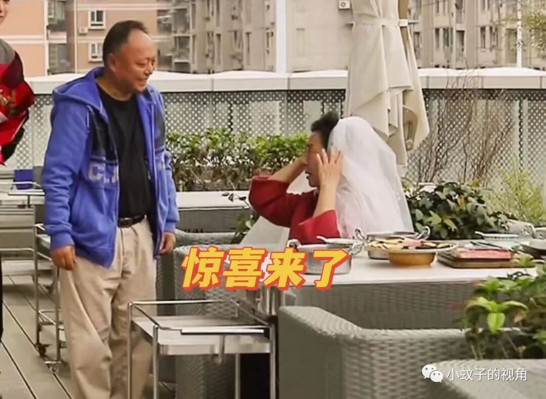 奶奶看到鲜花,立刻开心地笑了,像个孩子一样拉起爷爷开始吃饭。