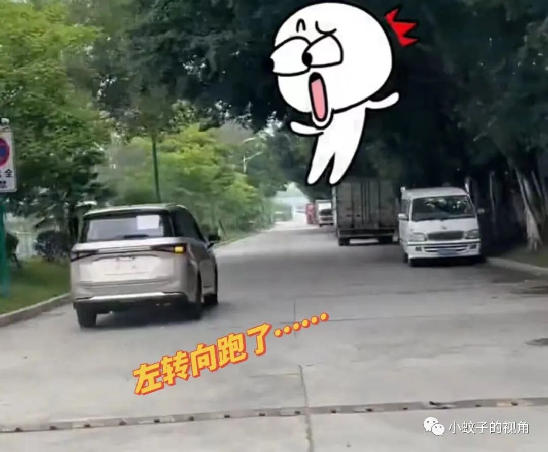 这位老公也是,自己回家的路不知道吗?再说了,她虽然打了右转向,但是右边并没有路口呀!很明显,她是一紧张打错了转向灯。