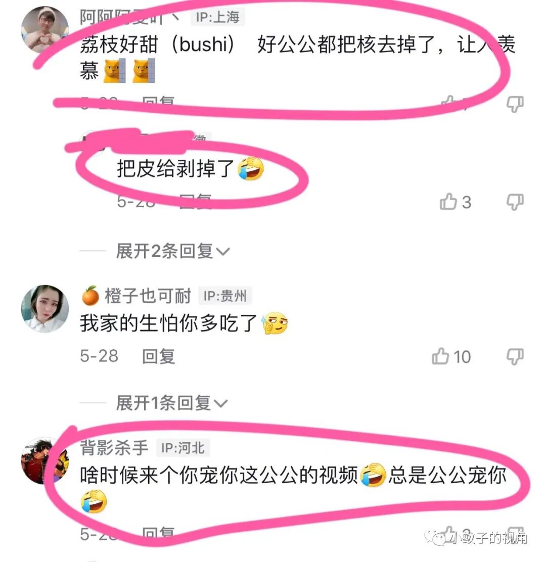 网友纷纷表示羡慕,说:荔枝好甜!好公公都把核给你去掉了,让人羡慕。