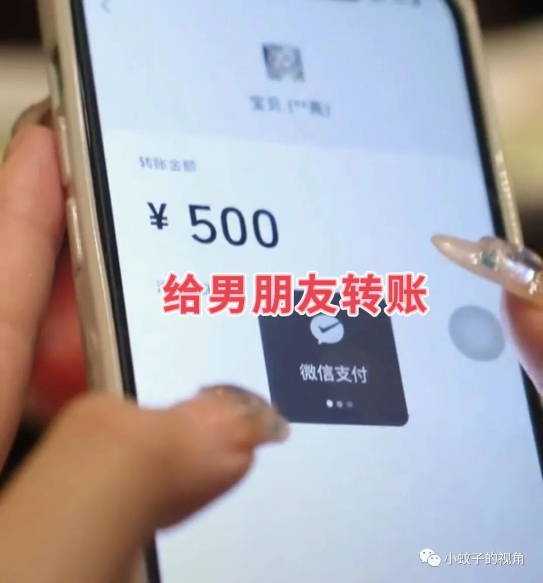 旁边的女朋友发现了这个细节,也注意到了他的为难,拿起手机装在玩手机,悄悄给男朋友转了500块钱,示意男朋友接收。