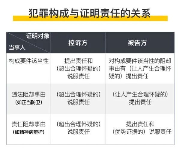 总之,法律永远是一种平衡的艺术,如果辩方无需承担任何辩护理由的说服责任,这对控方也可能是一种不可能完成的任务,物极必反的结果反而会导致辩护理由的取消,对辩方带来更大的不利。因此,稳妥的做法是将辩护理由区分为违法阻却和责任阻却,辩方对于违法阻却事由没有说服责任,只要承担合理怀疑的提出责任,证明责任就转嫁至控方。但是对于责任阻却,辩方依然需要承担优势证据的说服责任。
