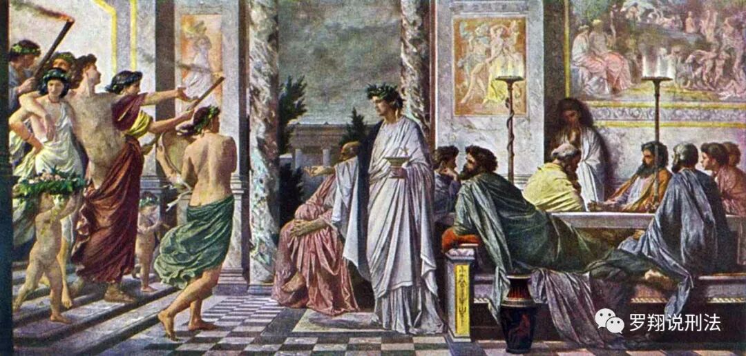 每年的酒神祭典,古希腊人都会在露天剧场举行戏剧会演,并由在场的3万观众评定优胜。这一年,阿伽通的第一部悲剧就获了奖,他在第二天举行了庆祝酒会。