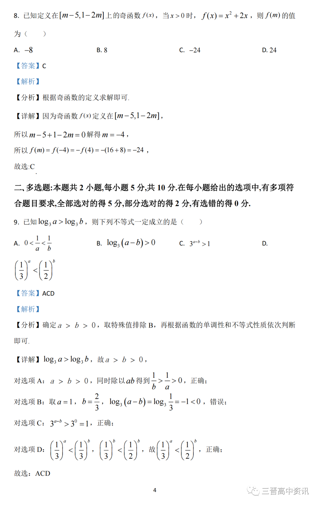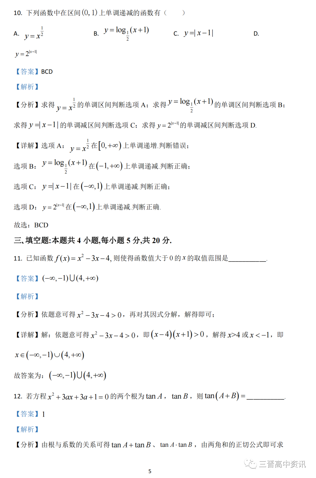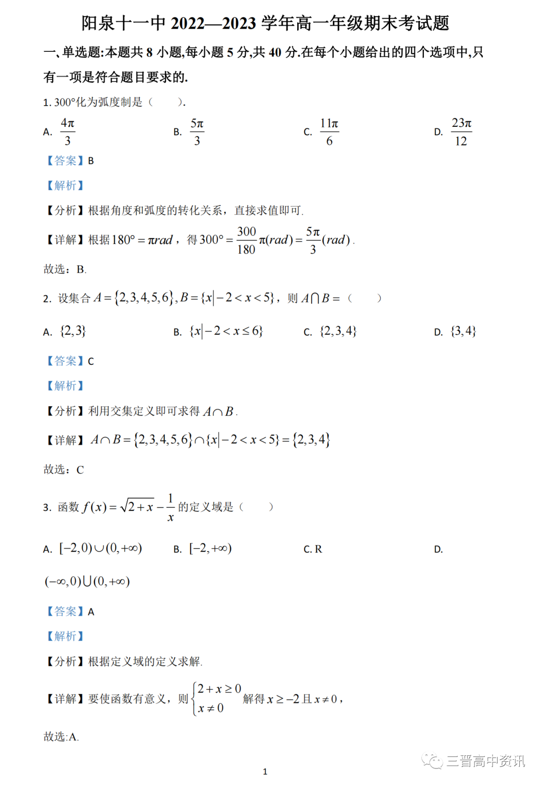 阳泉十一中22-23学年高一年级数学期末试题解析