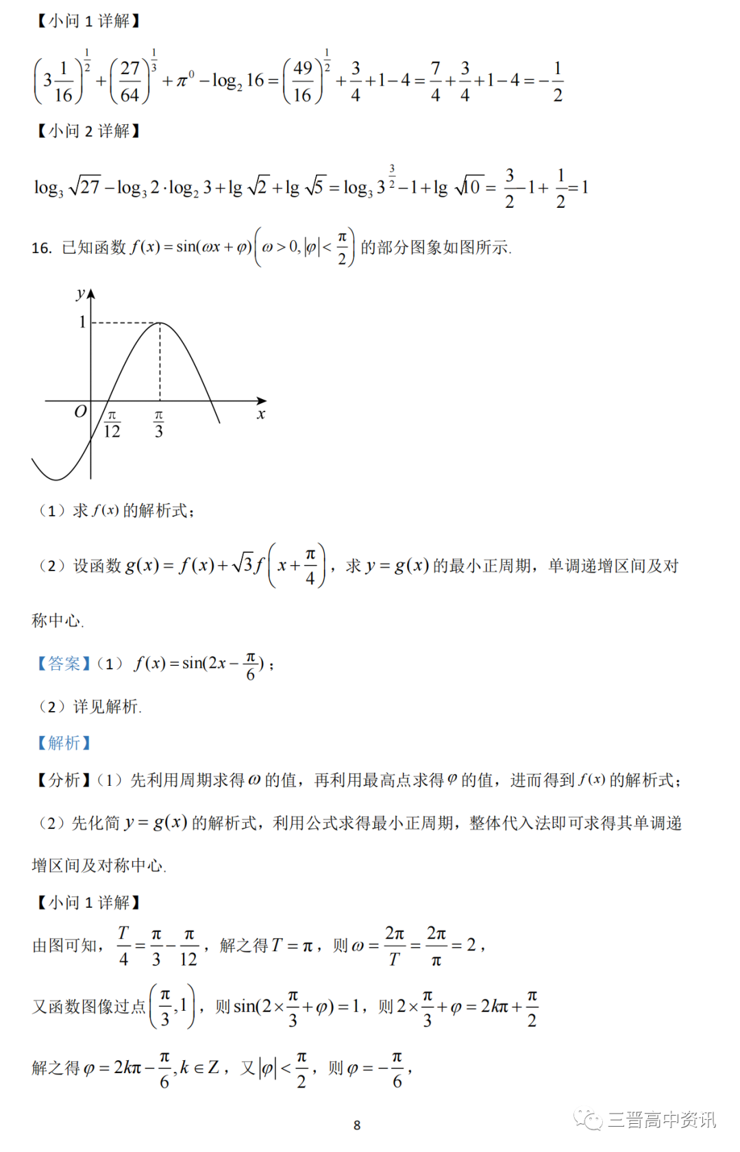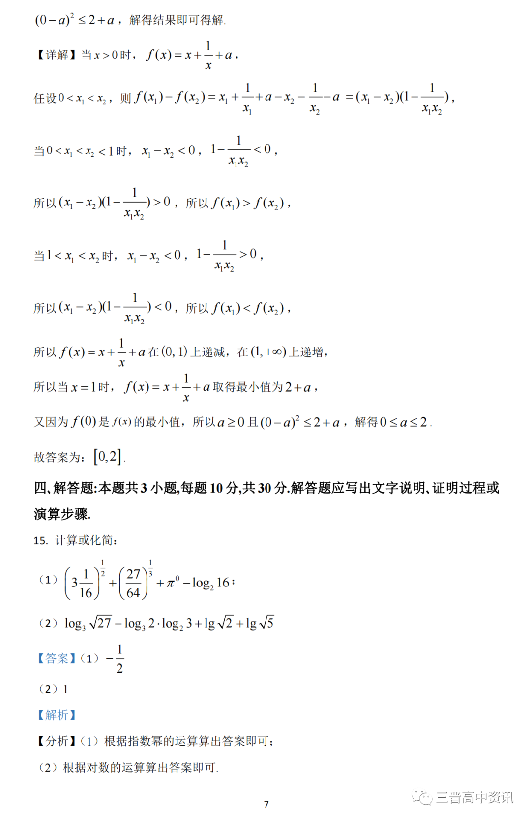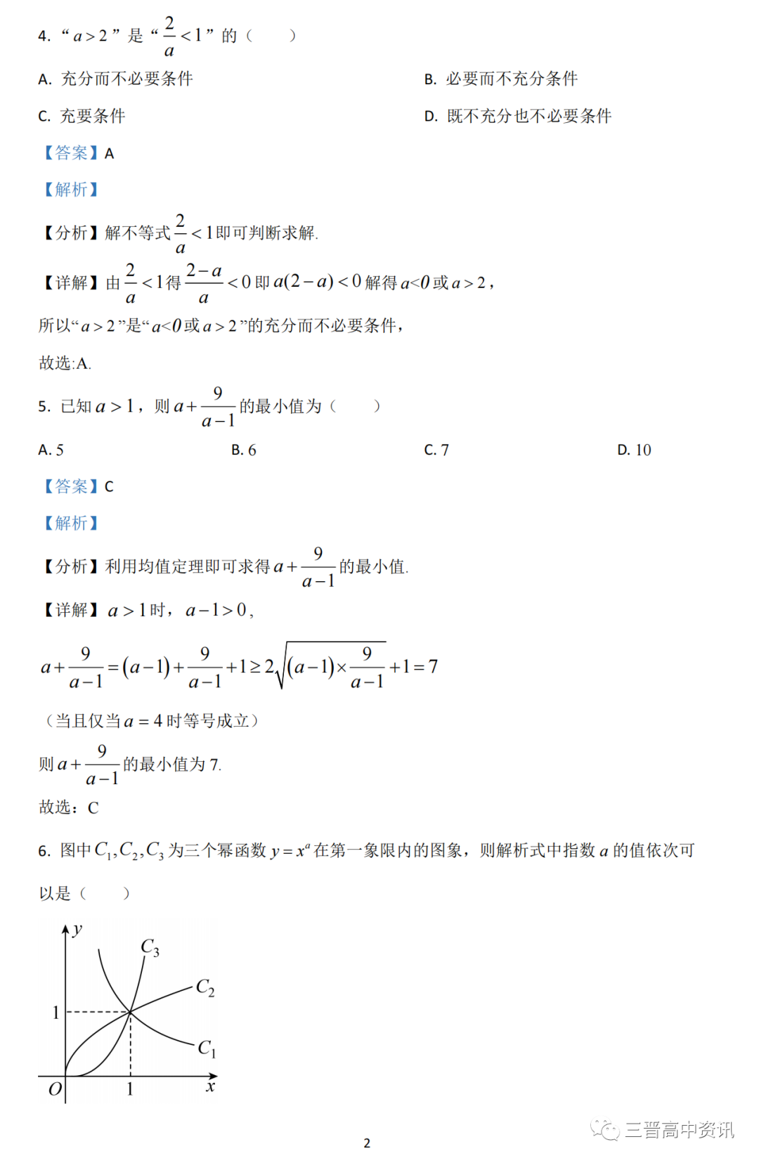 阳泉十一中22-23学年高一年级数学期末试题解析