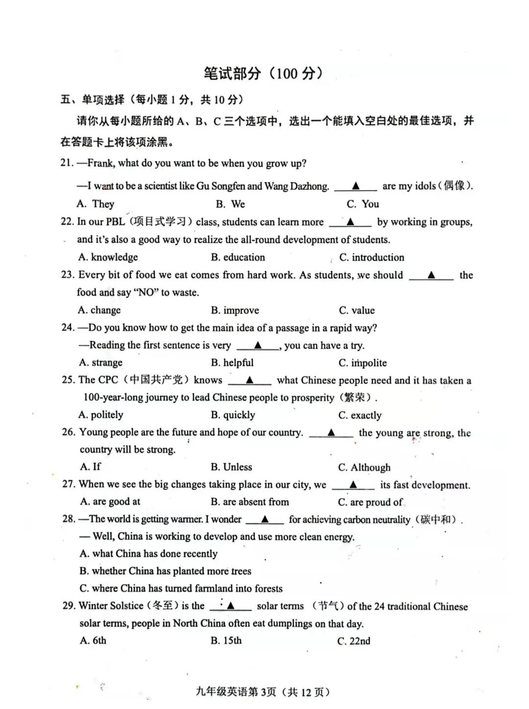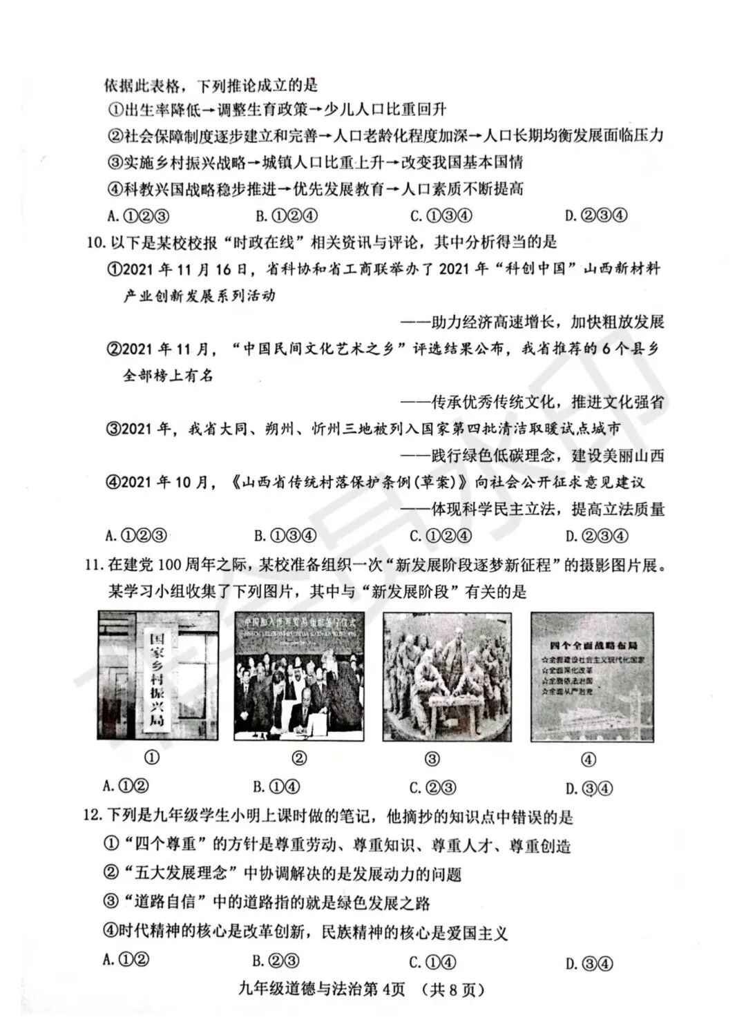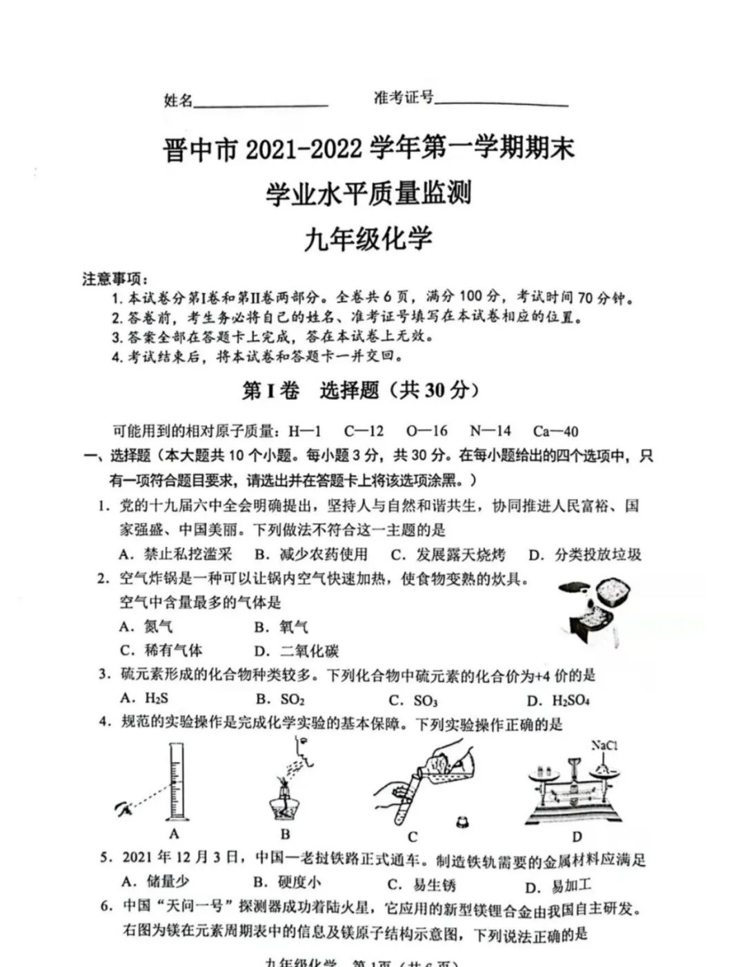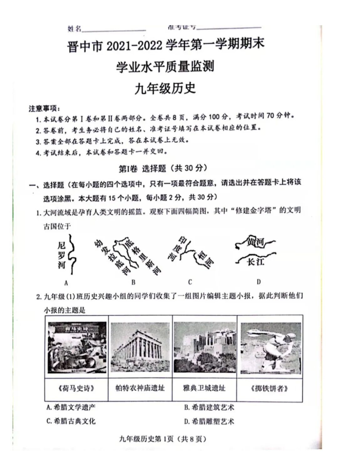 【初三全科】太原2021-2022学年第一学期期末试题及答案汇总