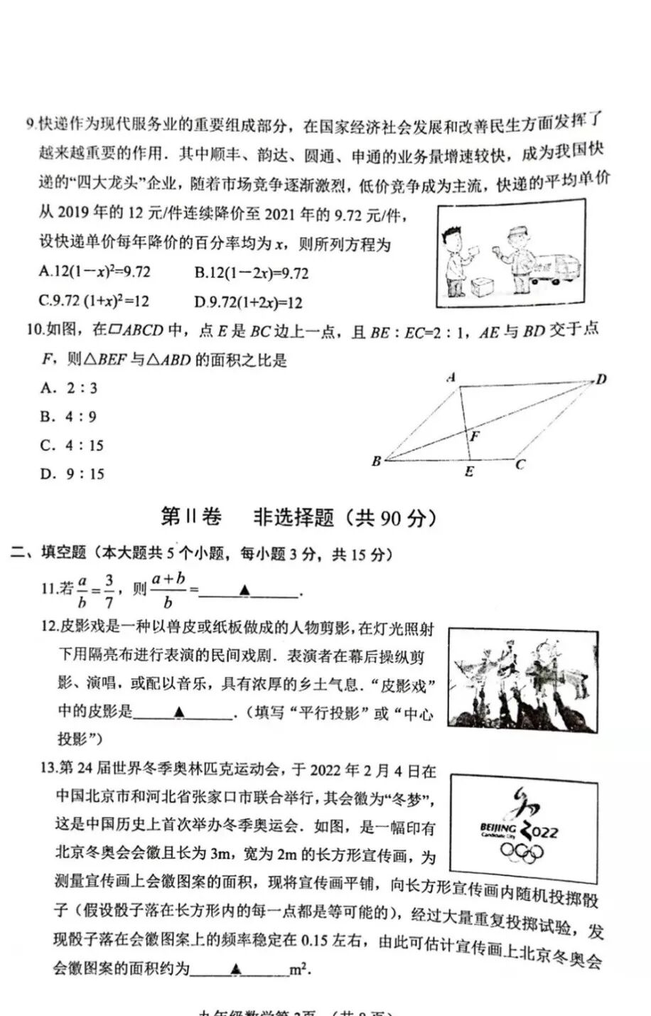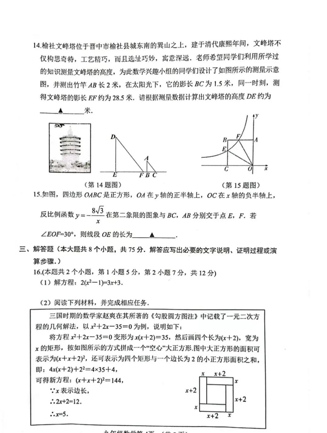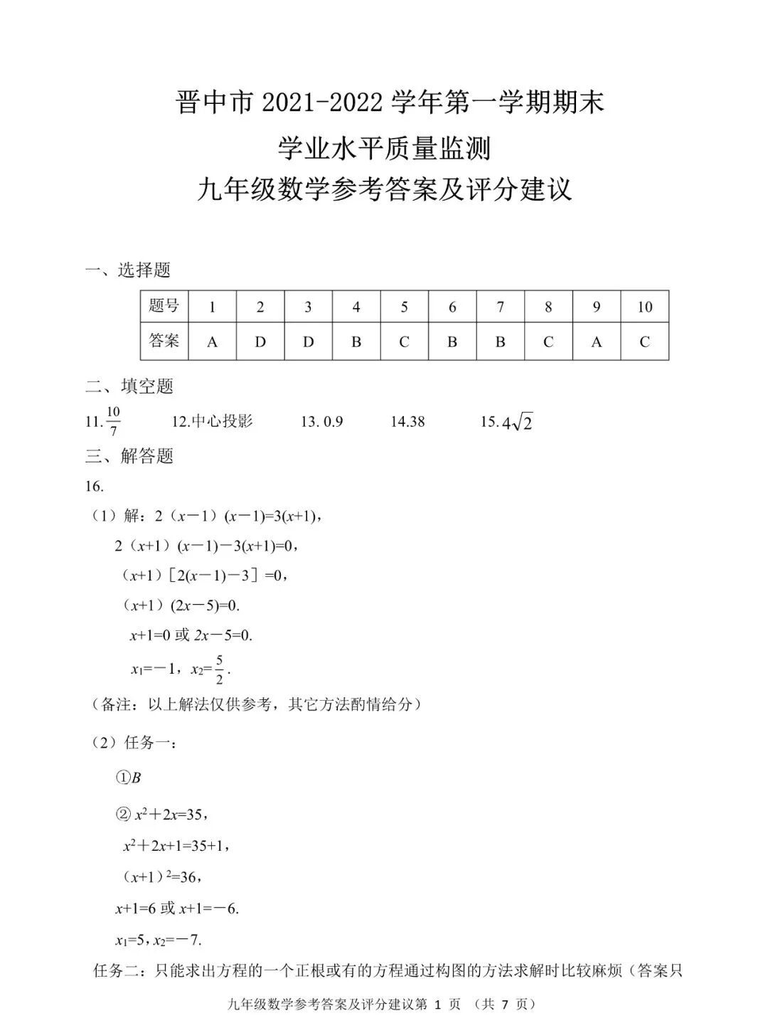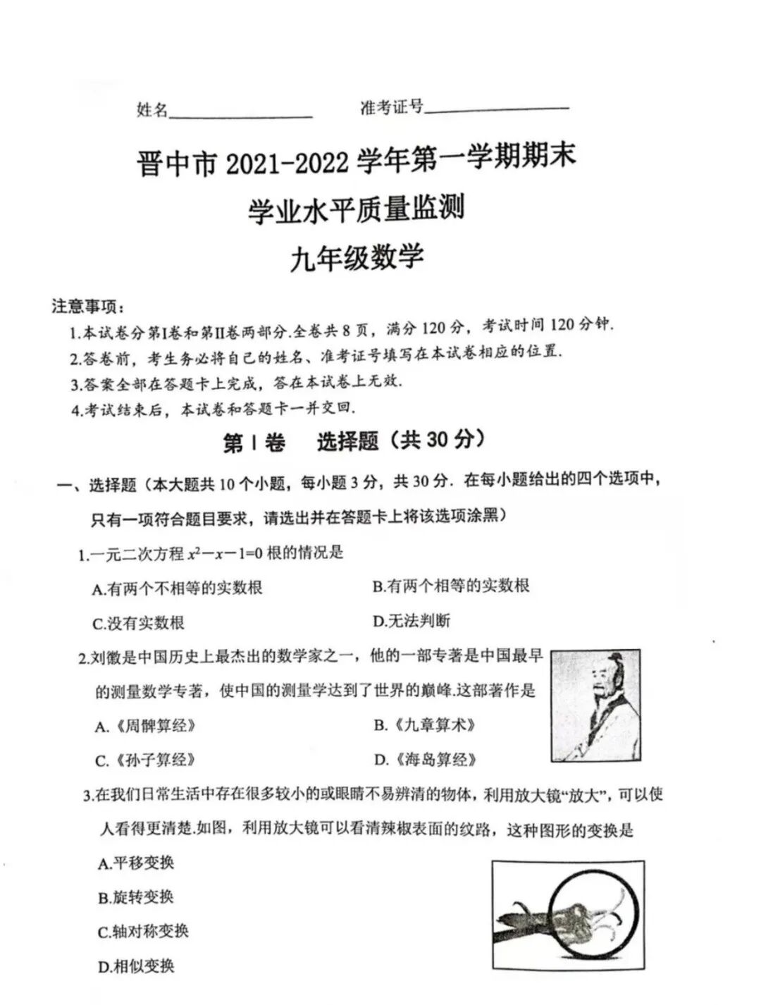 【初三数学】大同2021-2022学年第一学期九年级期末数学试卷