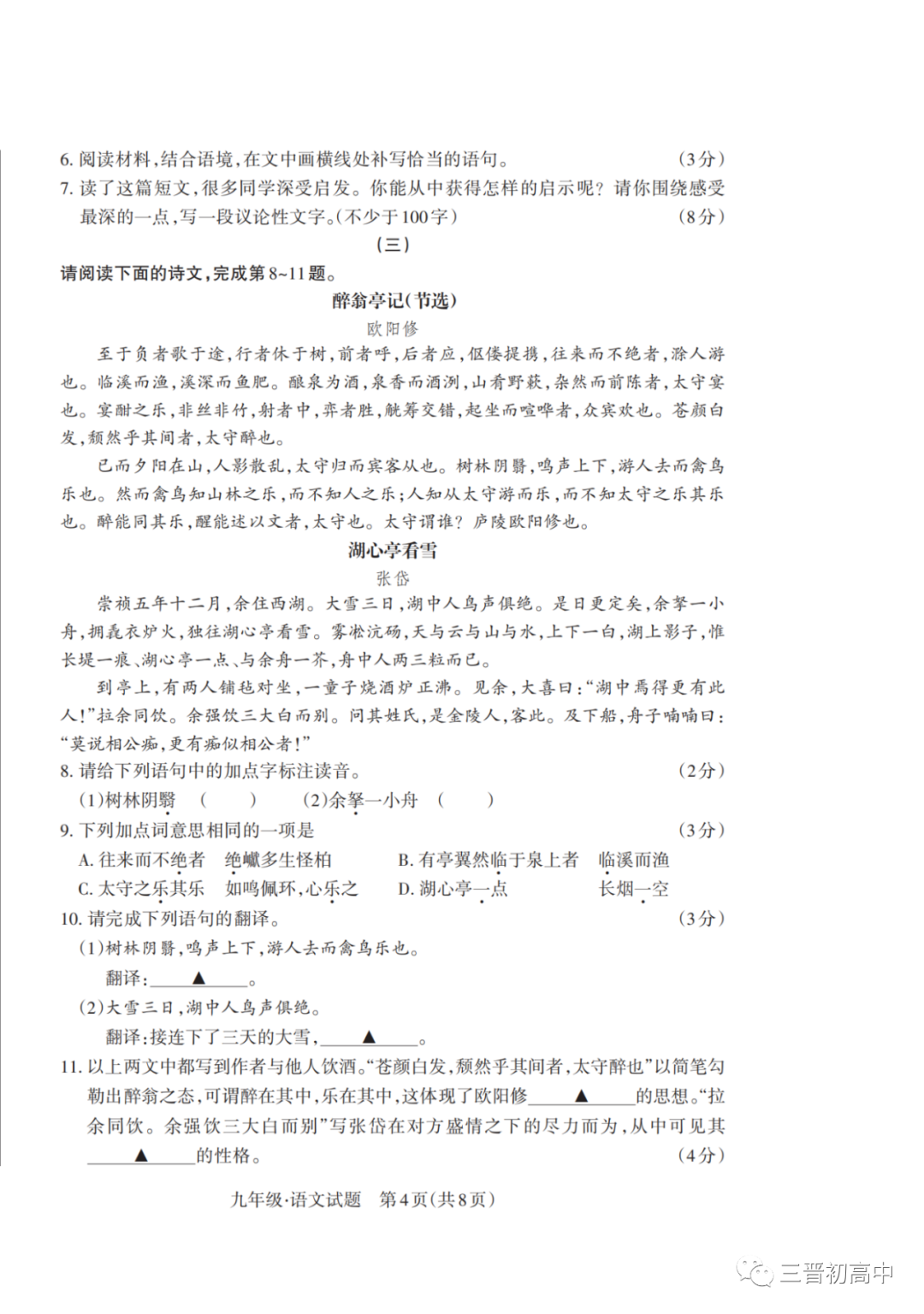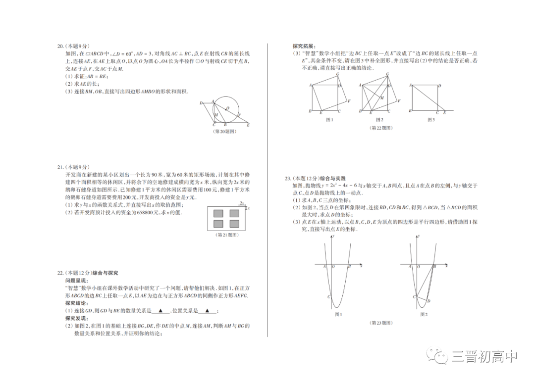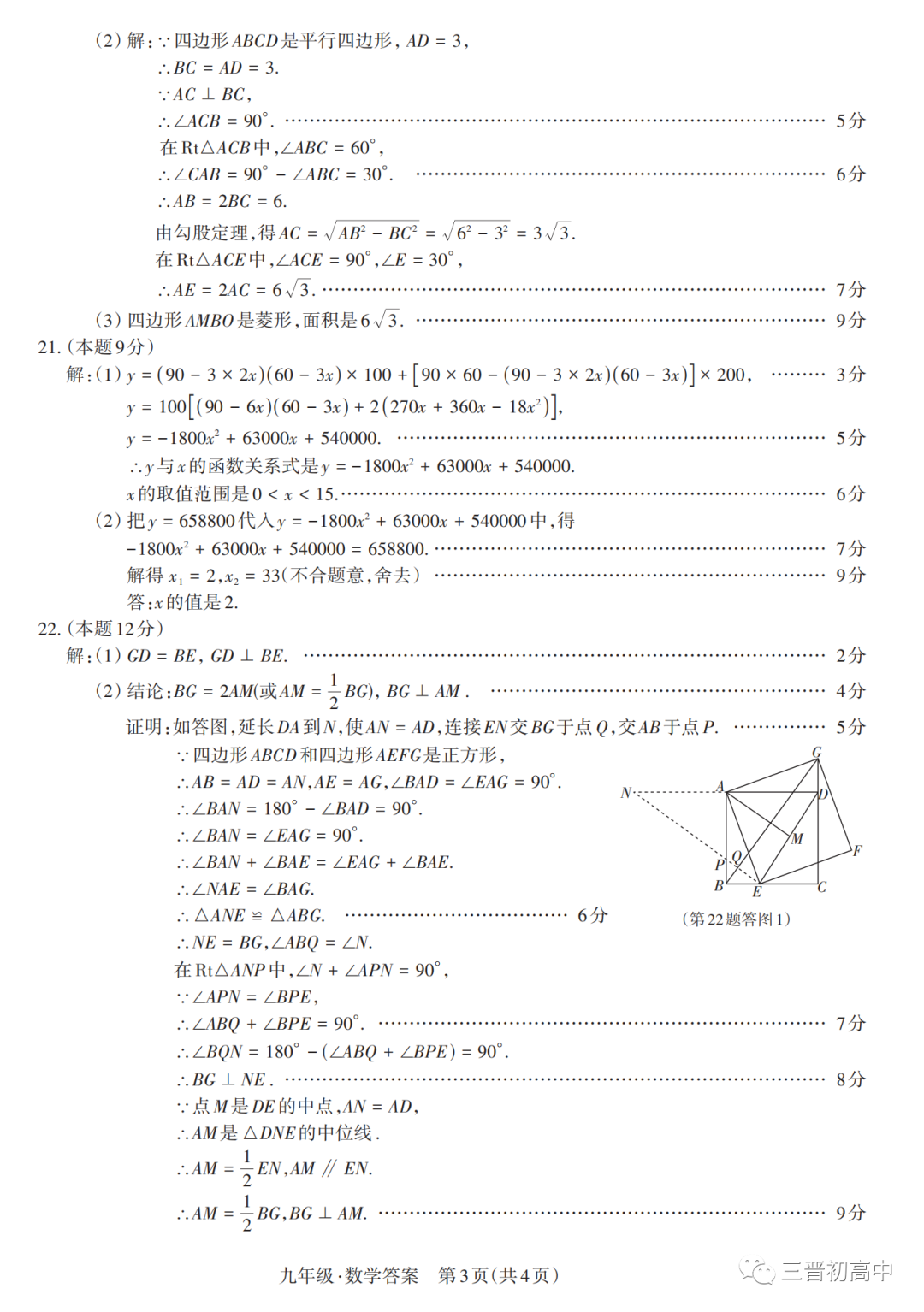 山西省实验中学2022-2023上学期期中|七八九年级数学试题及答案汇总