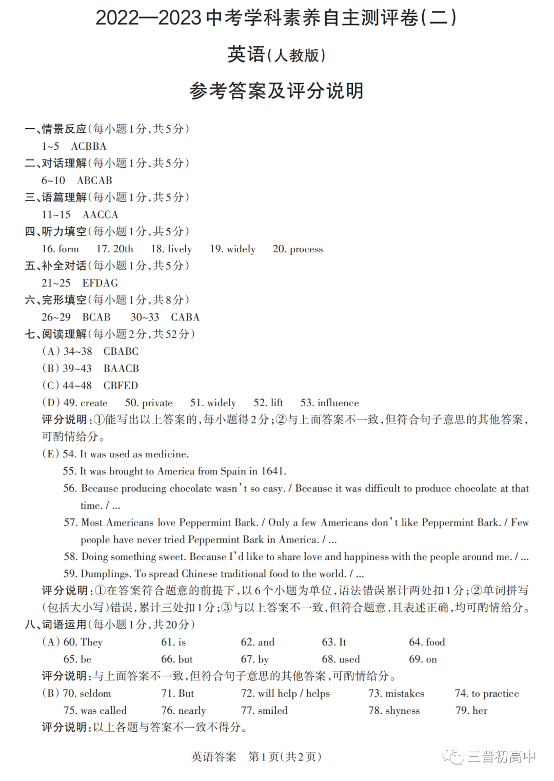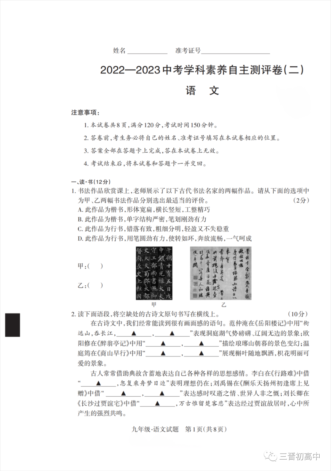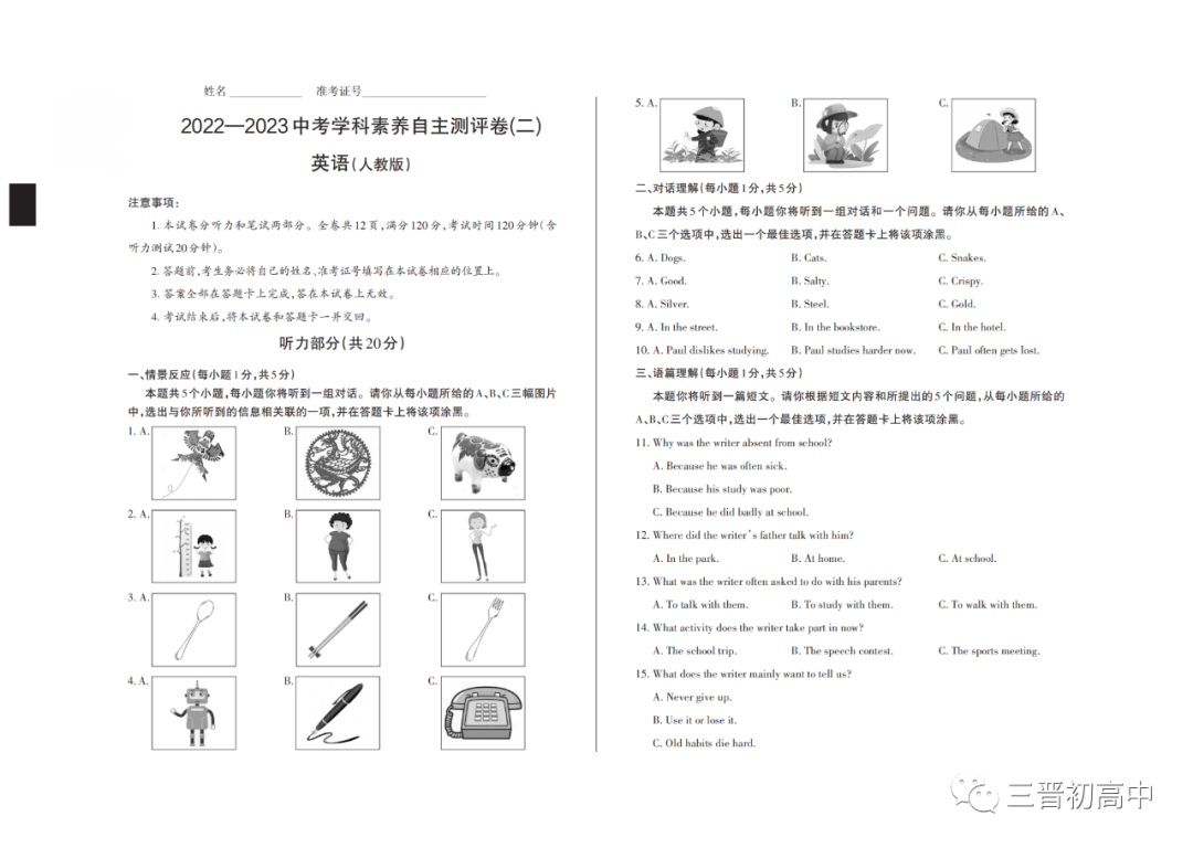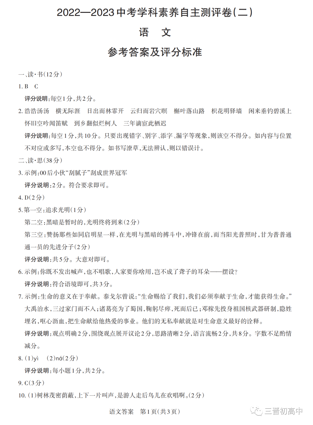 卓育云22-23中考学科素养自主测评卷全科试题及答案