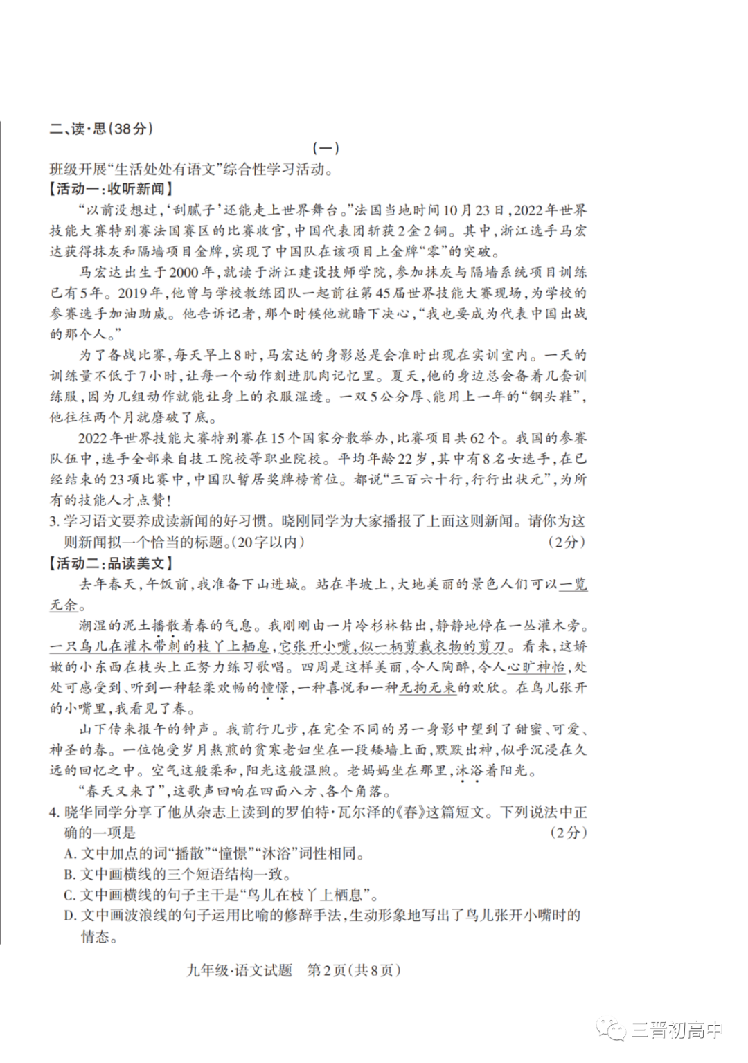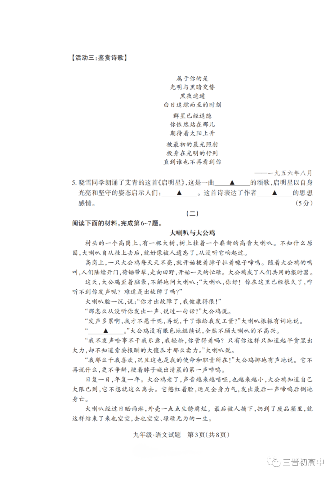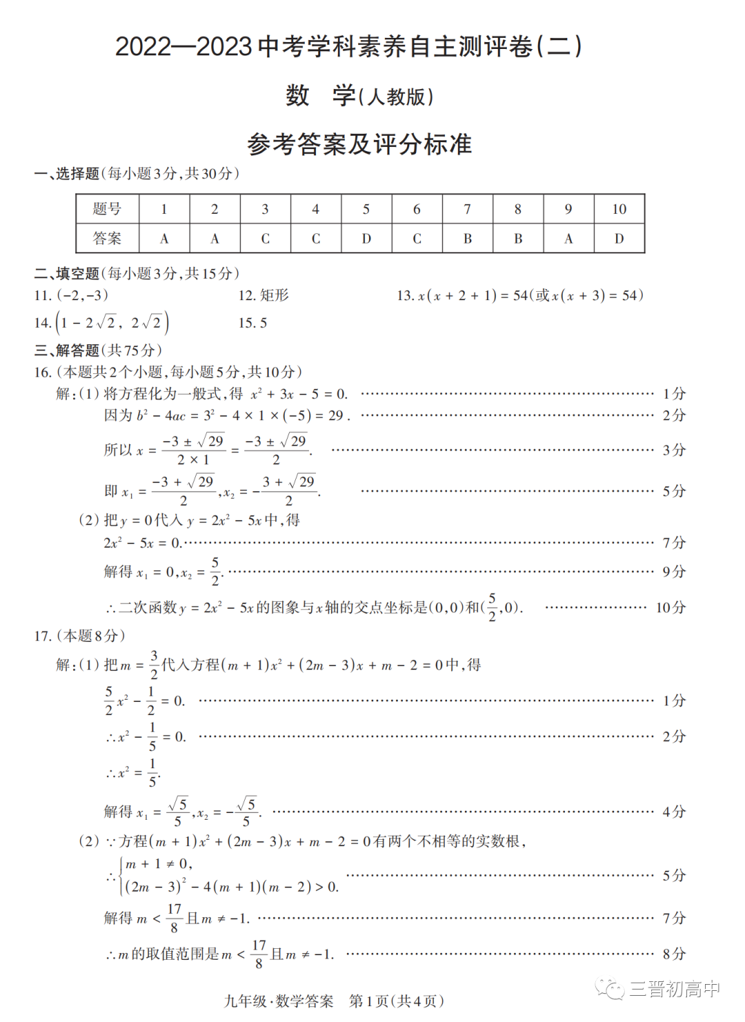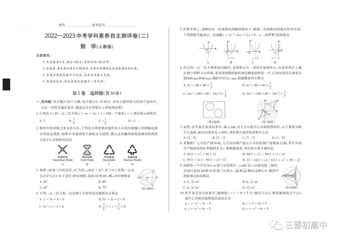 卓育云22-23中考学科素养自主测评卷全科试题及答案