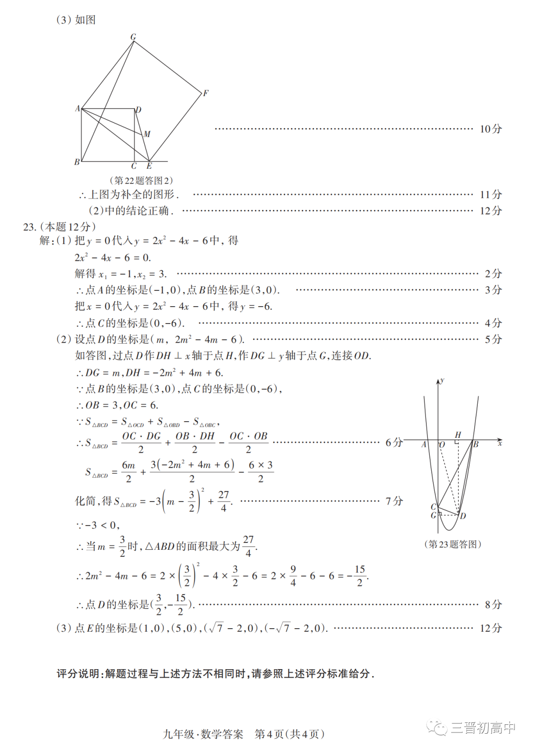 【初三全科】太原市2022-2023学年第一学期期中试题及答案更新完毕