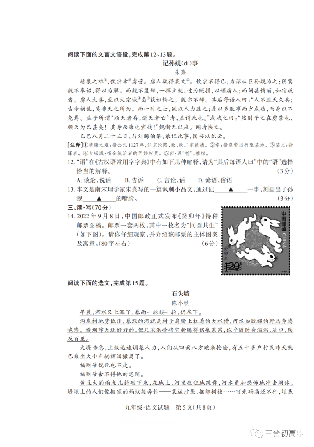 初一期中全科|太原2022-2023上学期期中试题答案全汇总