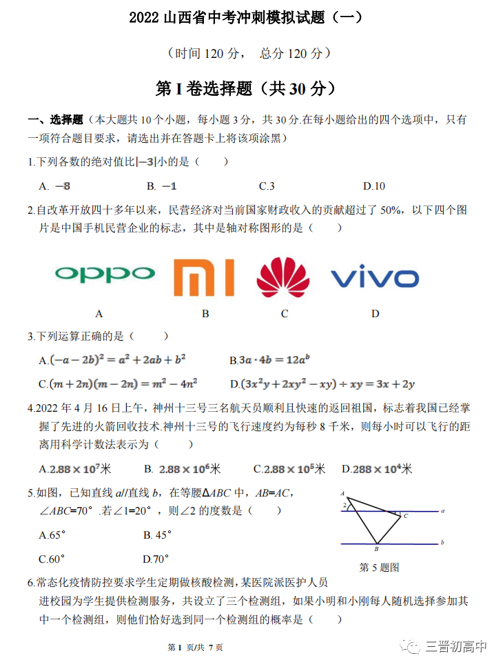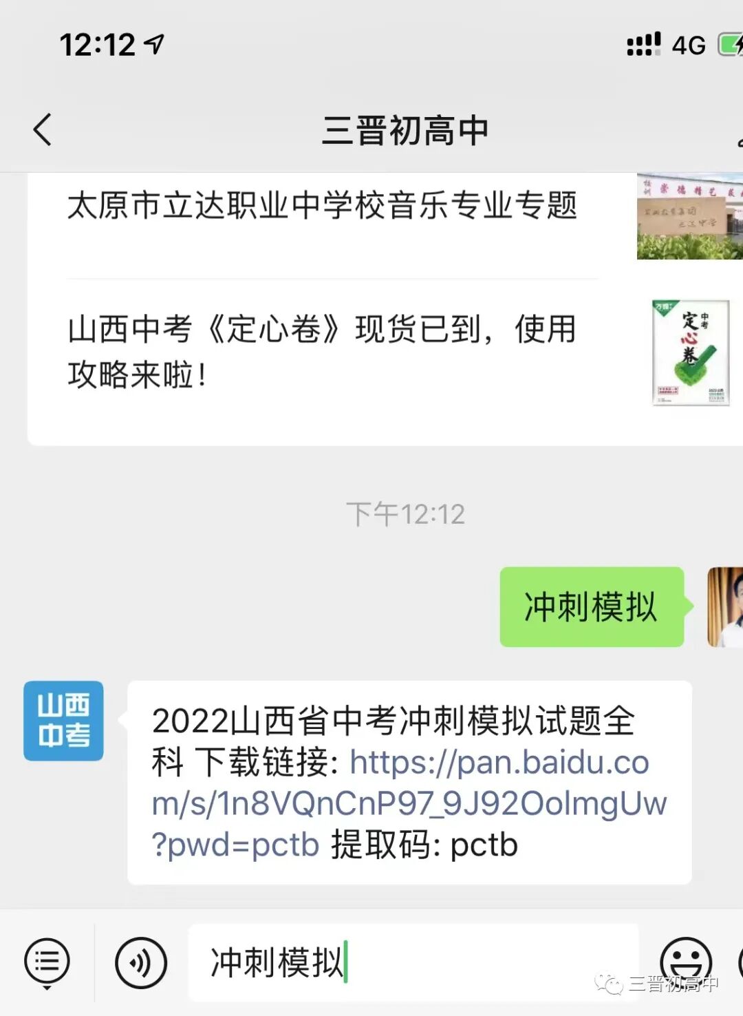 关注山西中考 首页下方发信息 ‘ 冲刺模拟” 获取下载链接