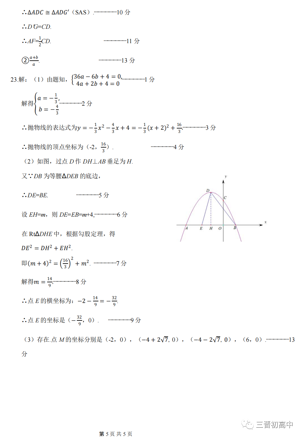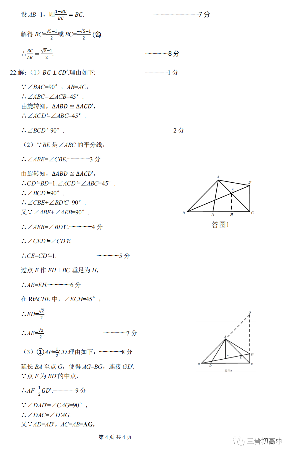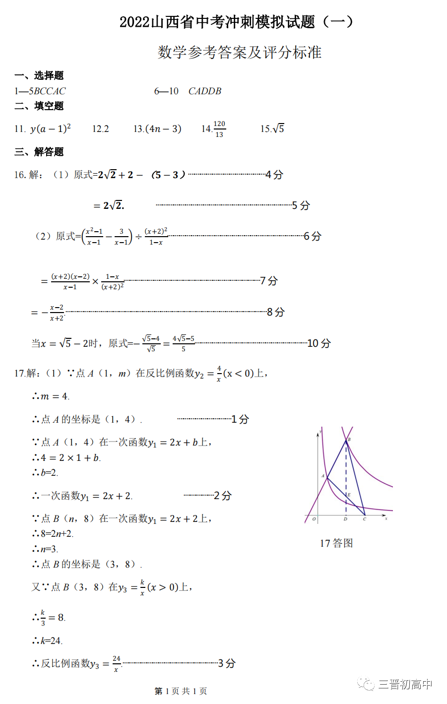 2022 山西省中考冲刺模拟试题(一)数学试题及答案