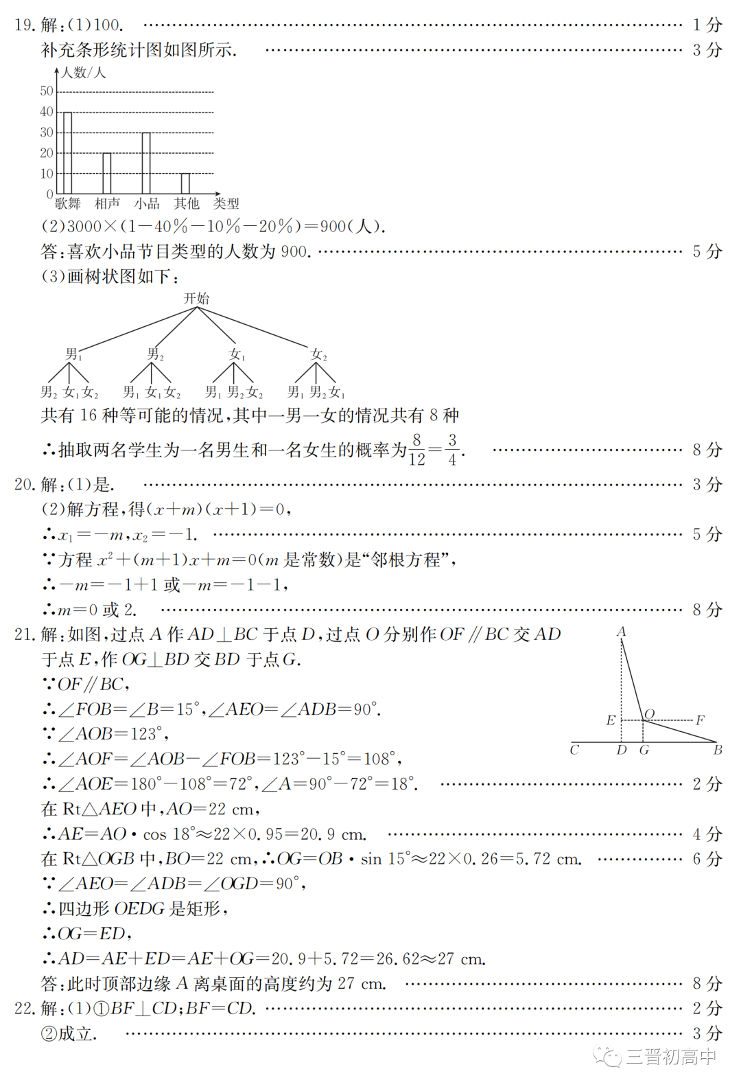 2022山西中考百校联考三全科试题及答案汇总含英语听力