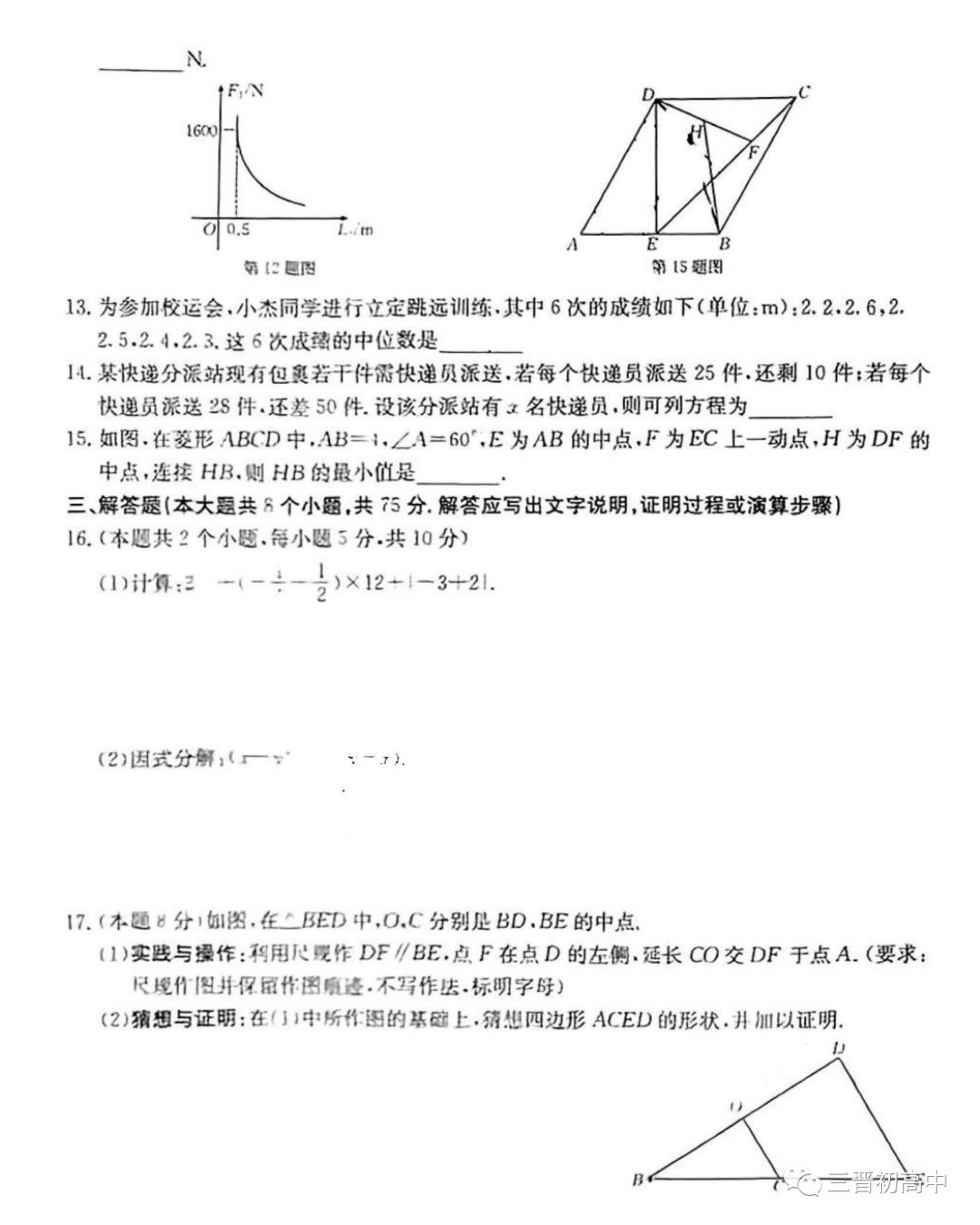 回复【省适应考】获取近年山西中考考前适应性训练历年真题电子版