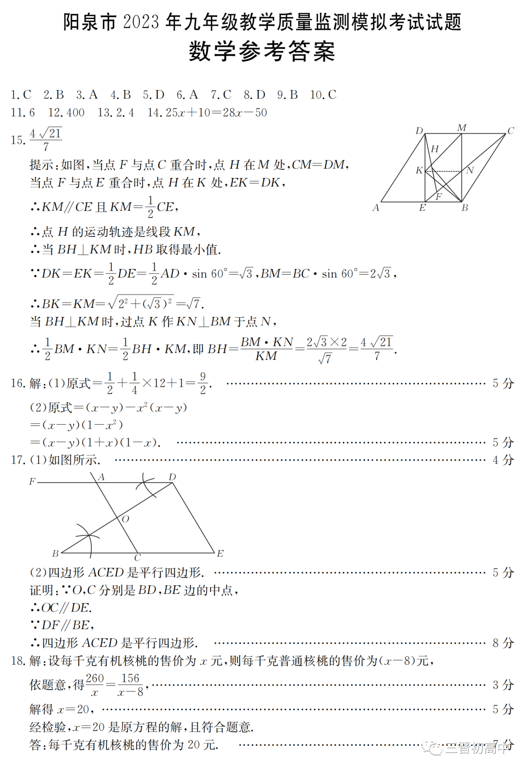 2023年运城 阳泉九年级质量检测试题+答案电子版领取