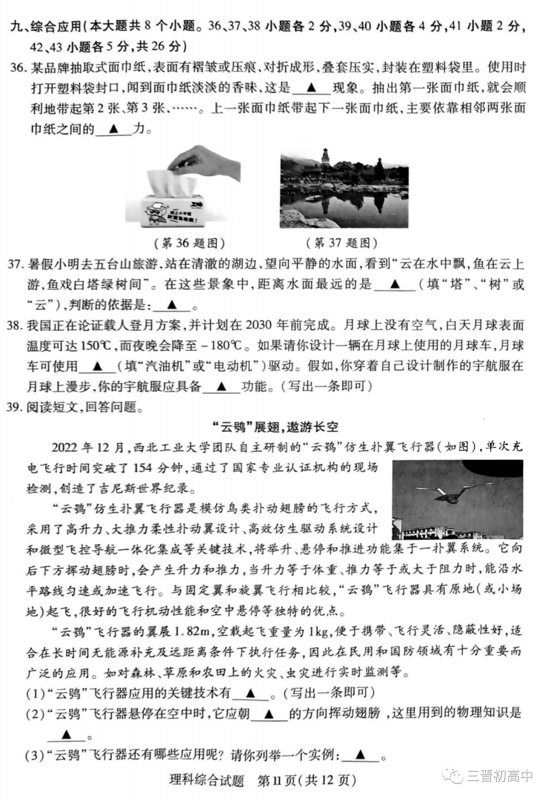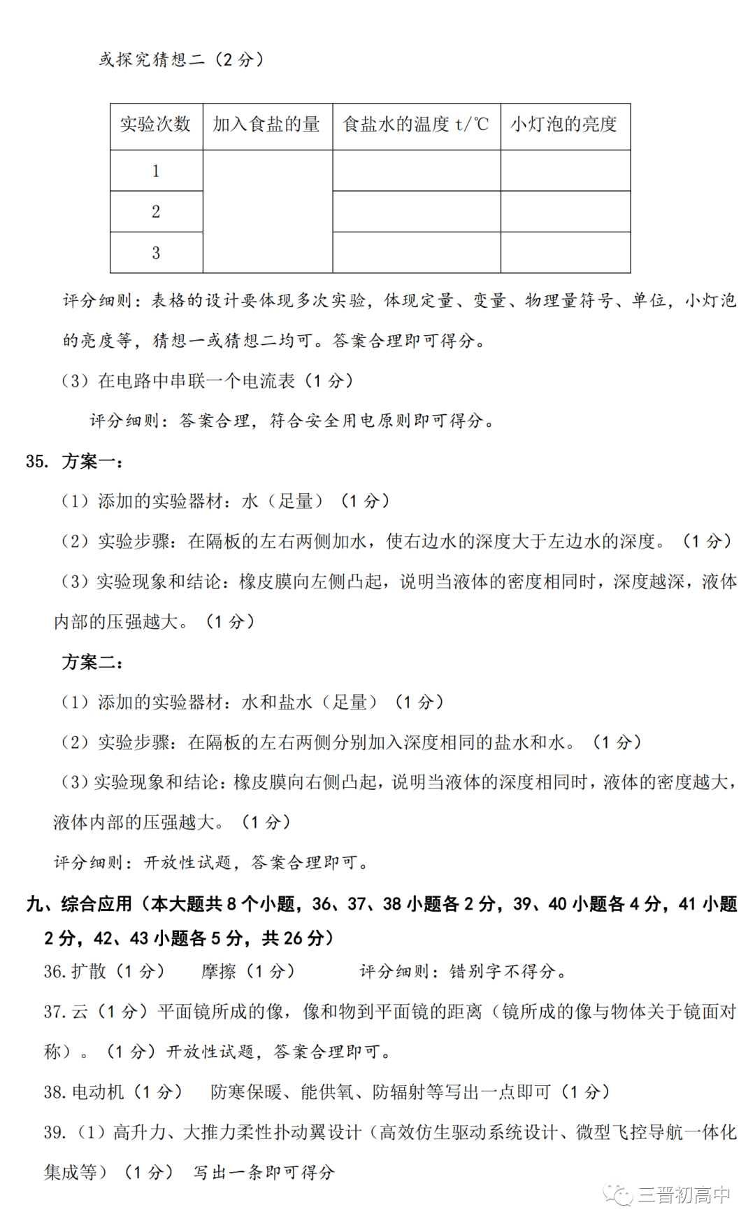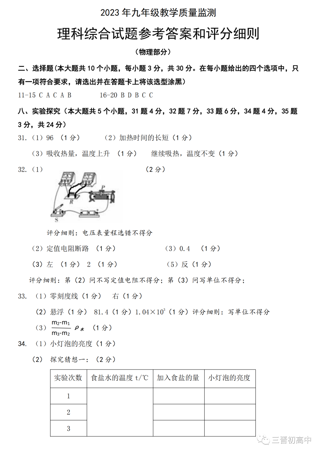 2023年运城 阳泉九年级质量检测试题+答案电子版领取