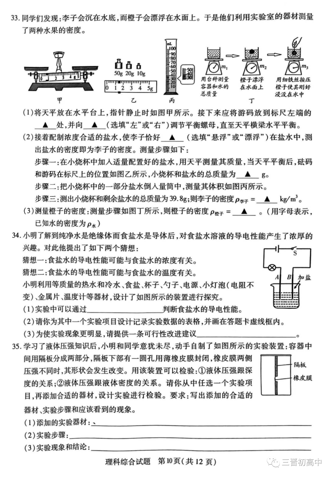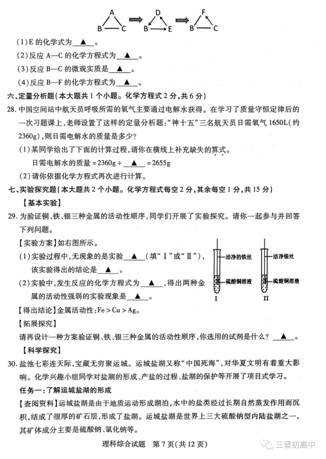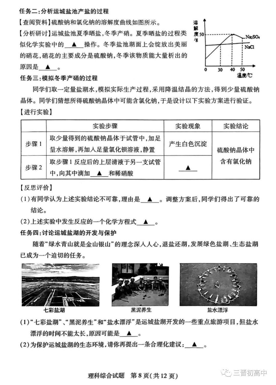 2023年运城 阳泉九年级质量检测试题+答案电子版领取