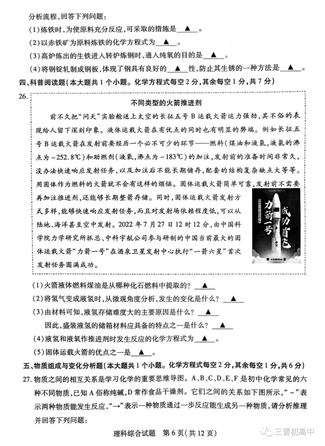 2022山西中考模拟百校联考(二)全科试题及答案已更新