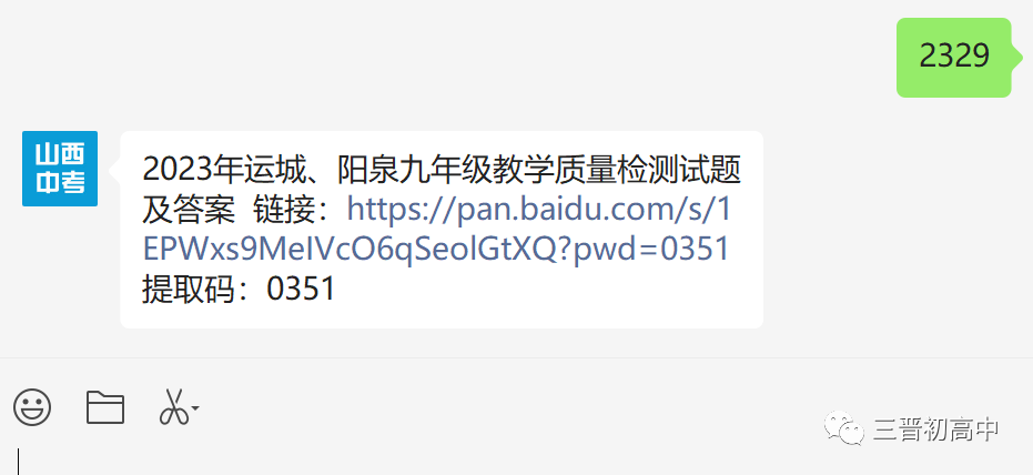 2、发消息“2329” 获取运城、阳泉质量检测卷电子版