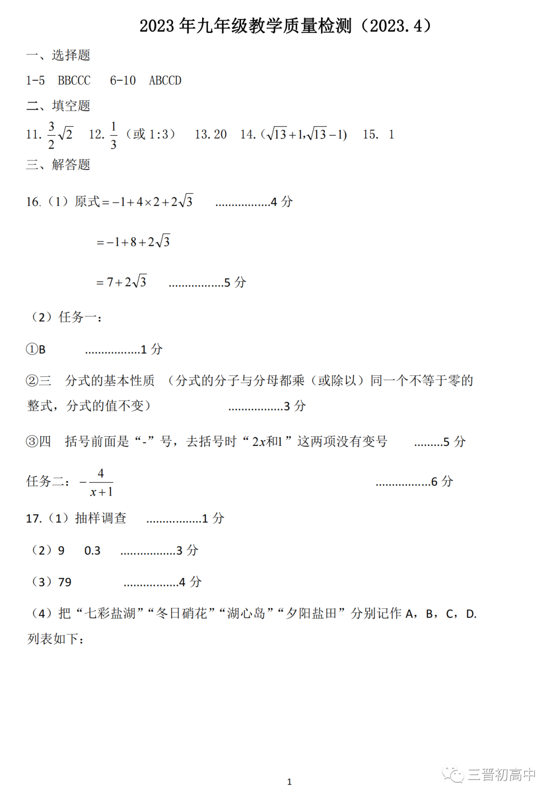 2023年山西省初中学业水平测试信息卷试题答案(含听力)
