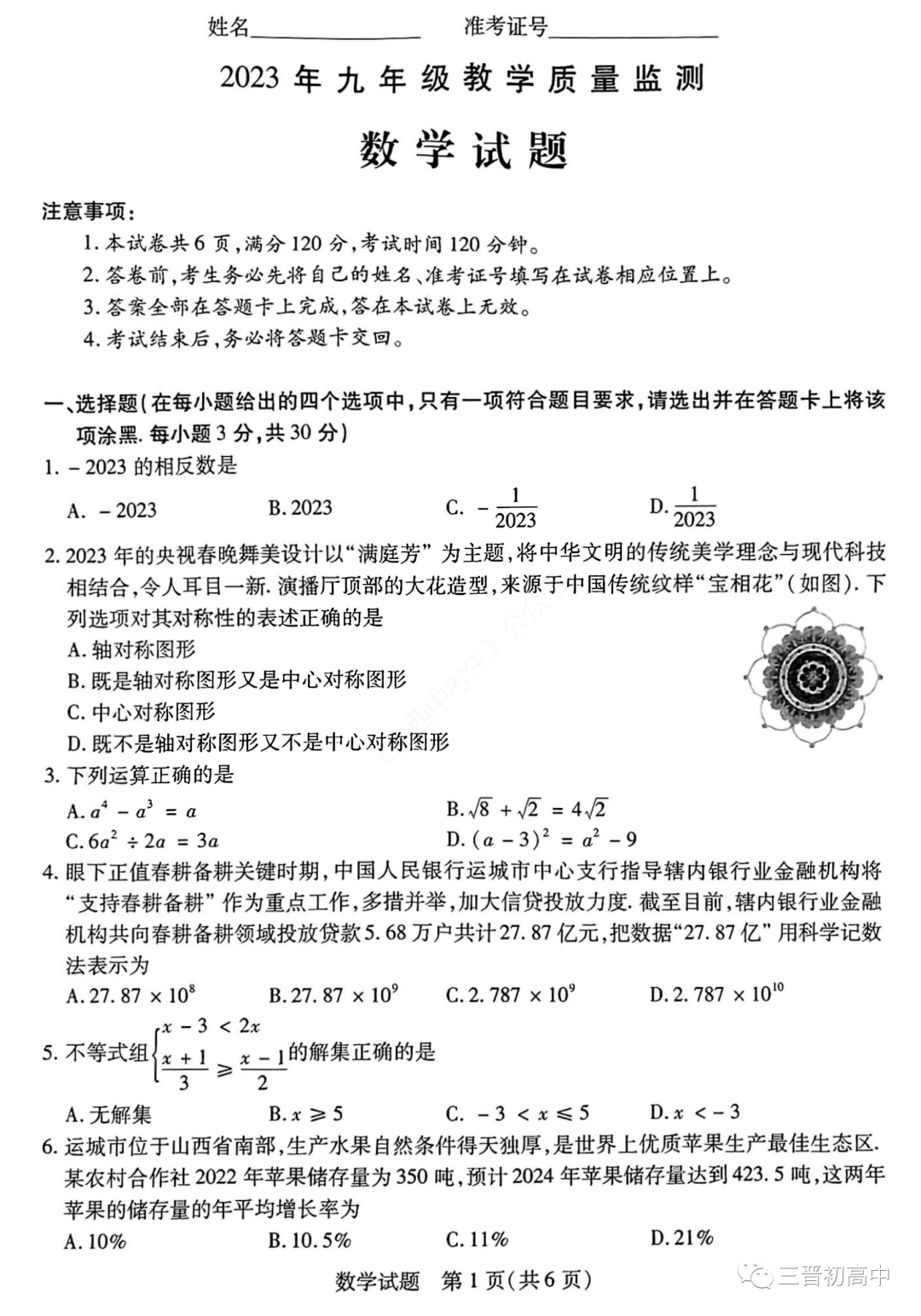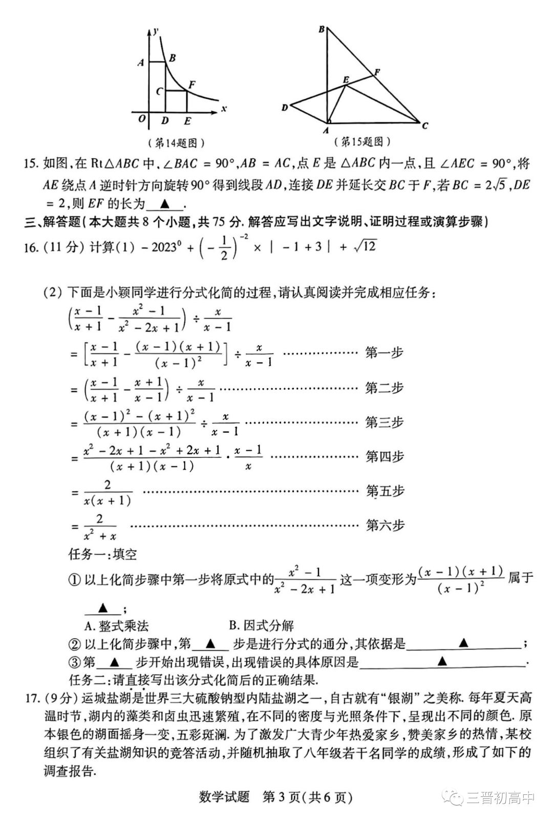 2023年运城 阳泉九年级质量检测试题+答案电子版领取